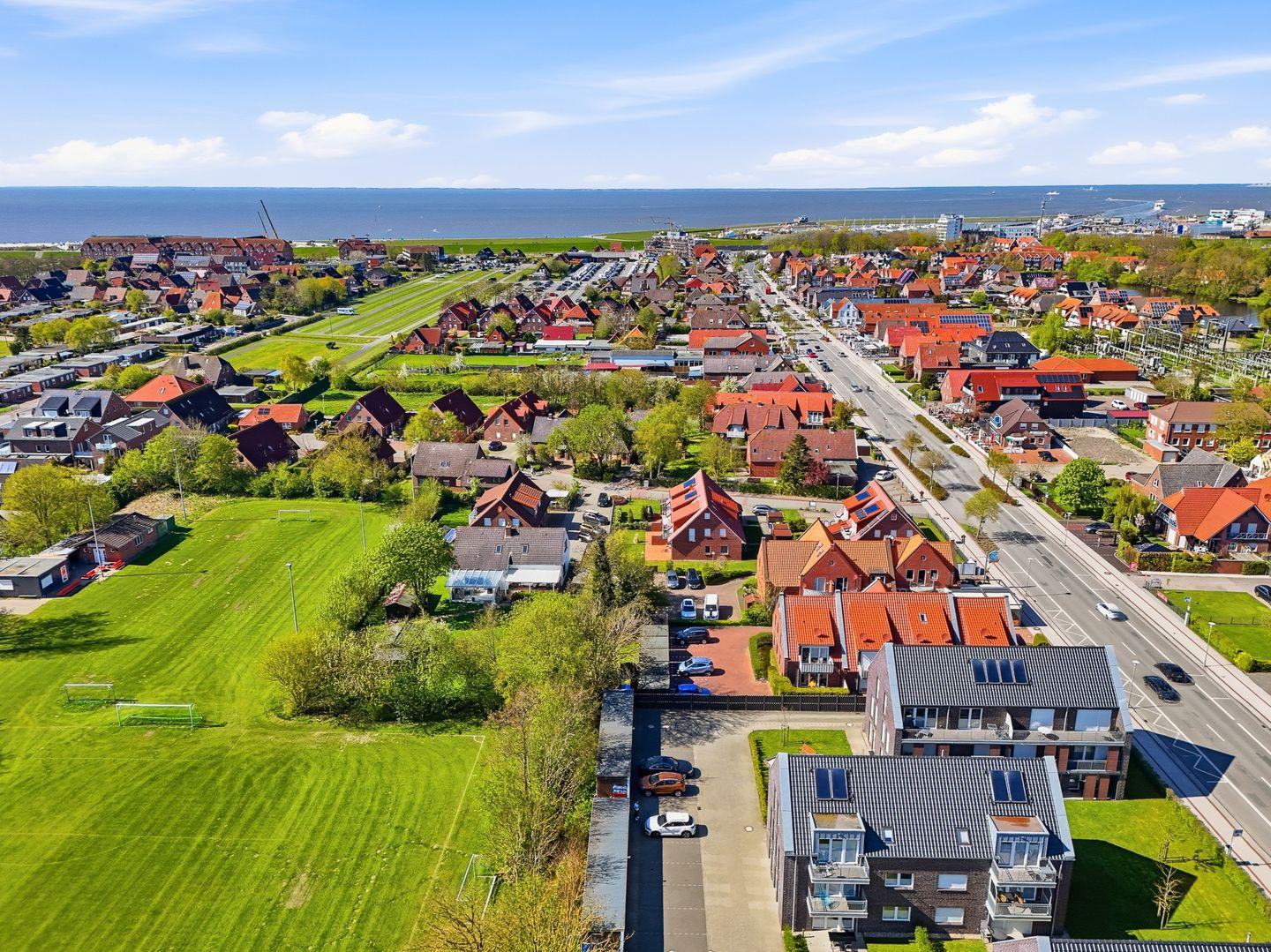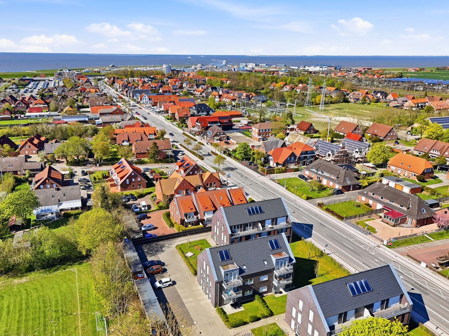 Die Ferienwohnung befindet sich in Norddeich, einem beliebten Küstenort an der ostfriesischen Nordsee. Zentral gelegen, sind der breite Sandstrand, die Hafenpromenade und zahlreiche Freizeitangebote wie die Seehundstation, das Erlebnisbad Ocean Wave und Minigolfplätze bequem zu Fuß erreichbar. Der Fährhafen mit Verbindungen zu den Inseln Norderney und Juist liegt in unmittelbarer Nähe. Die Umgebung bietet zudem viele Rad- und Wanderwege entlang der Deiche, ideal für Ausflüge in die Natur. Ein perfekter Standort, um die Nordsee und Ostfriesland in vollen Zügen zu genießen.