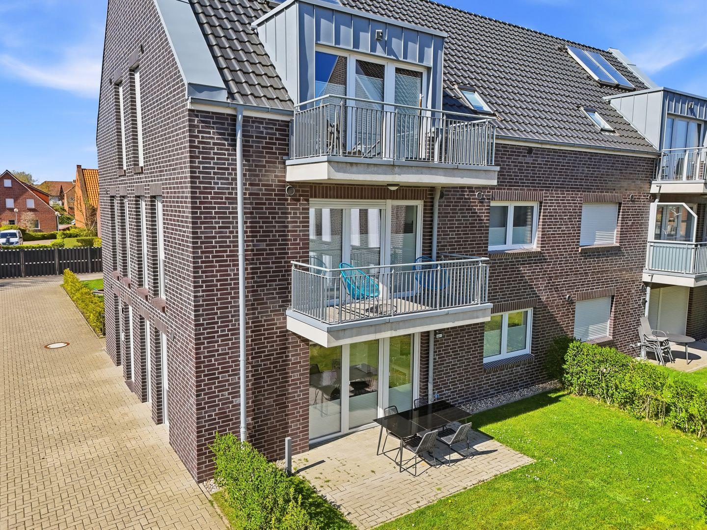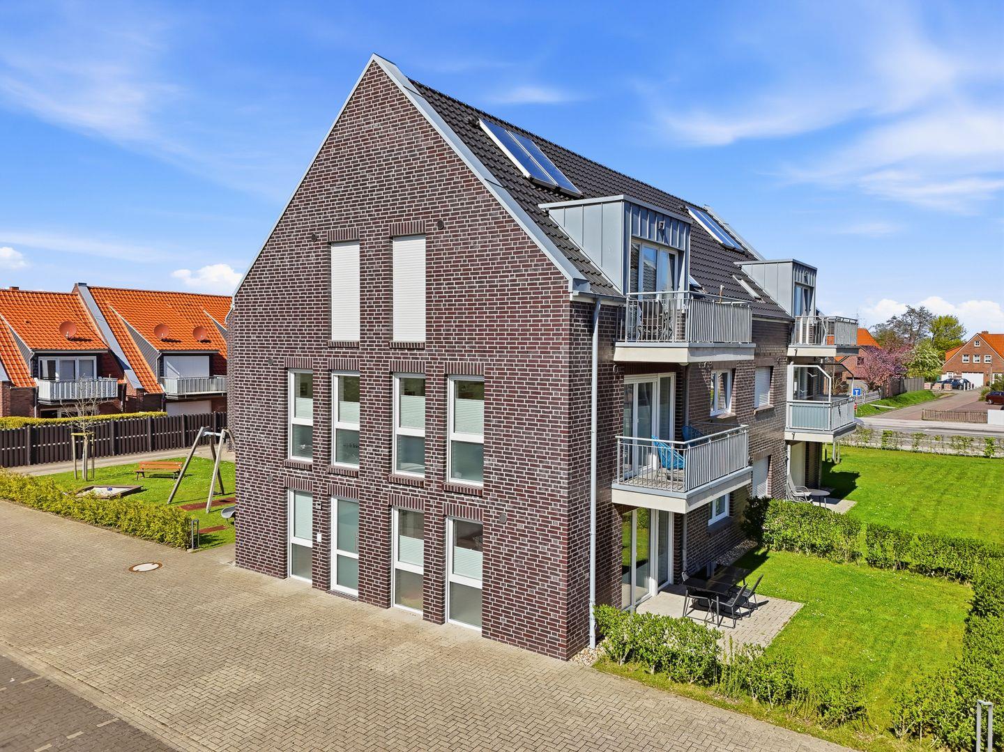 Moderne 70qm Ferienwohnung in Norddeich mit Garten, Terrasse und Spielplatz für erholsame Urlaubstage.