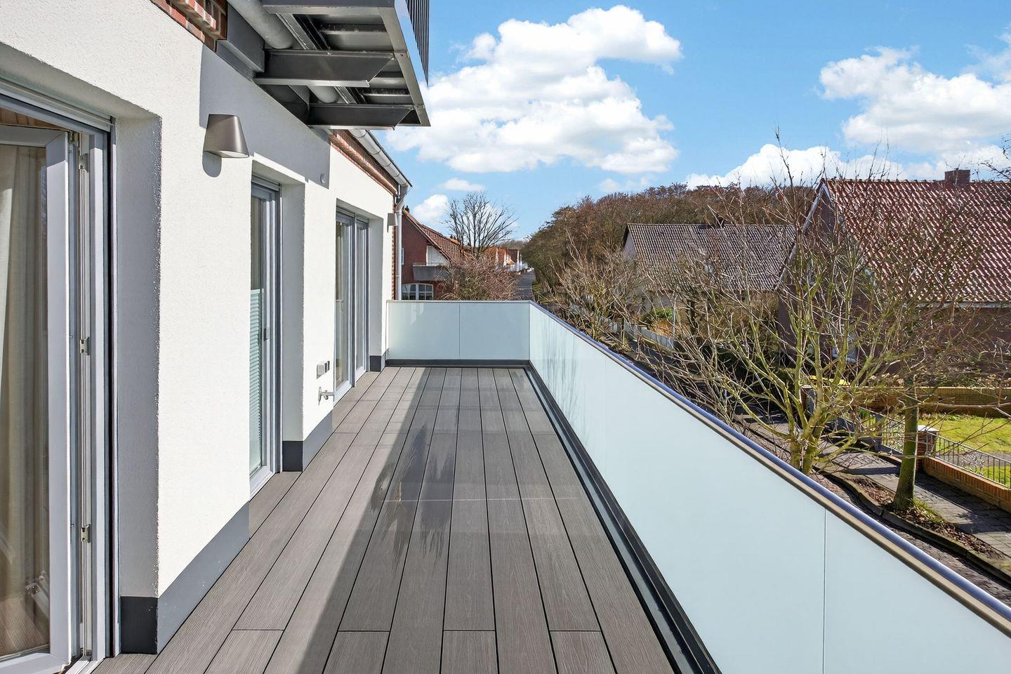 Moderne Ferienwohnung Inselauszeit 27 auf Norderney, nahe Strand und Zentrum, mit Balkon und Fußbodenheizung.