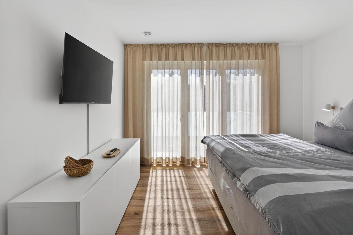 Im Wohnbereich sorgen Sofa, Sessel, Kommode, Garderobe und Esstisch für eine gemütliche und angenehme Atmosphäre. Zwei Fernseher mit digitalem Satellitenanschluss sowie WLAN und Internet stehen Ihnen ebenfalls zur Verfügung. Die Fußbodenheizung tragen in jeder Jahreszeit zu einem angenehmen Wohnklima bei. Vinylböden im Wohn- und Schlafbereich, Sichtschutz an allen Fenstern unterstreichen den gepflegten und wohnlichen Charakter. Alle Zimmer verfügen über elektrische Aussenrollos.