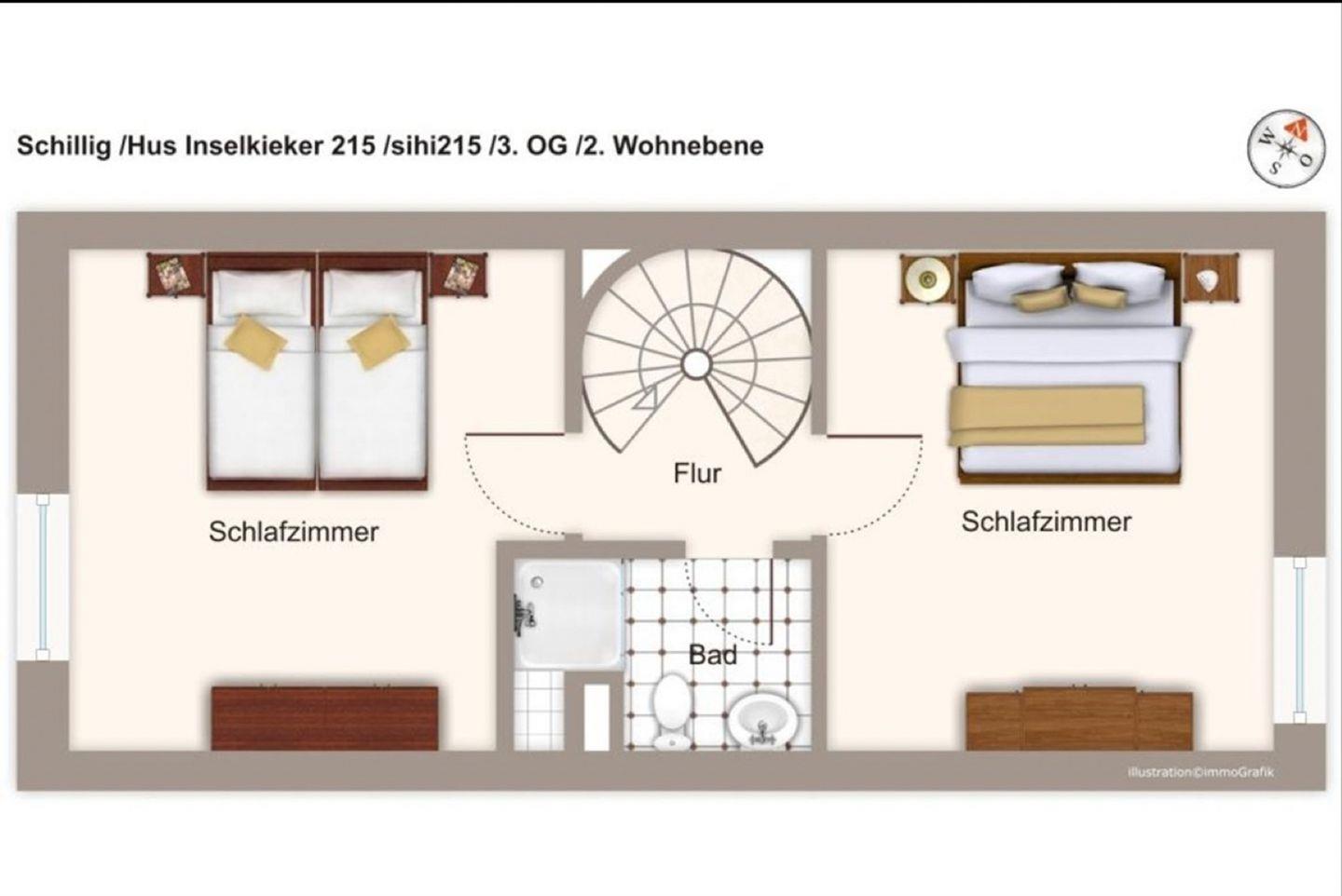 Im „Hus Inselkieker“ in Schillig erwarten euch gemütliche Ferienapartments im typischen Nordsee-Ambiente – mit direktem Zugang zum Strand! Die Maisonette-Wohnung erstreckt sich über zwei Ebenen und bietet mit 53 qm sowie einem Balkon mit Blick ins Grüne den perfekten Rückzugsort für bis zu vier Personen.