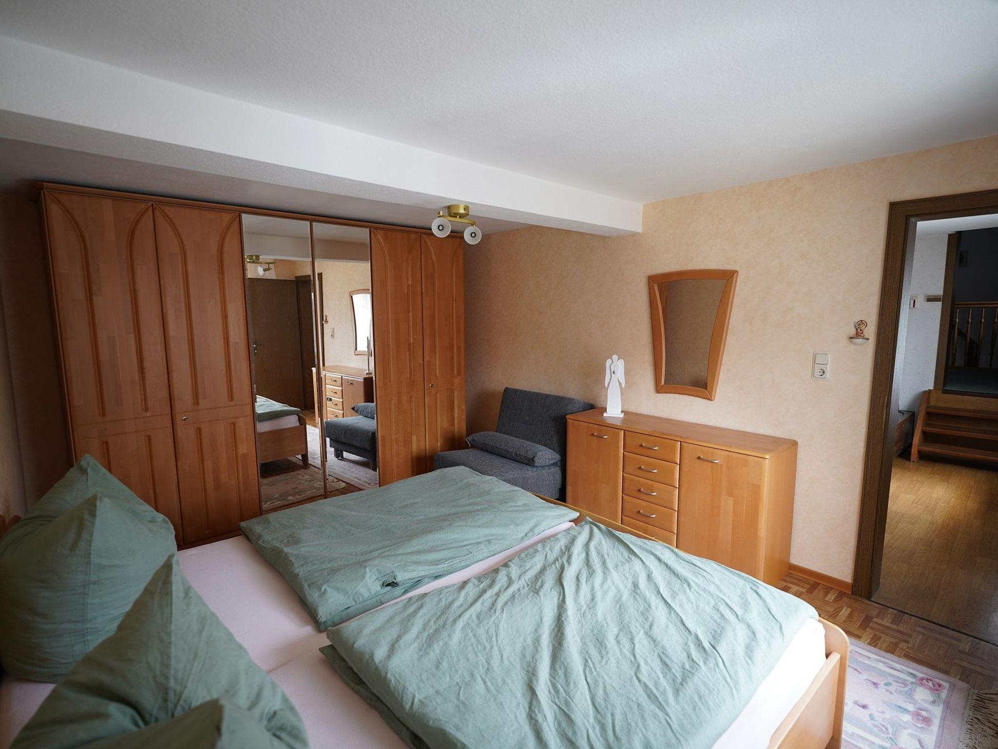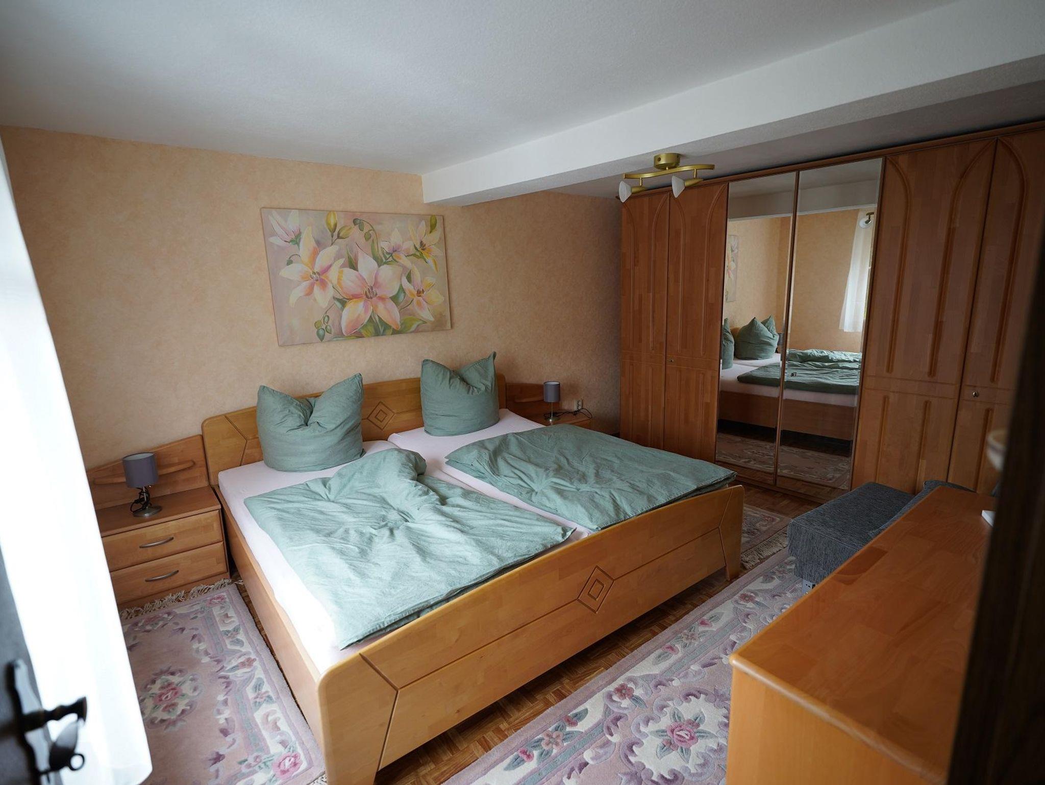 Wir möchten Ihnen gerne die Unterkunft kurz vorstellen. Unser ca. 100qm großes Ferienhaus ist gemütlich eingerichtet und verfügt über 2 Schlafzimmer im Obergeschoss (OG). Eins davon mit Doppelbett (sowie ausziehbarer Couch), wenn gewünscht haben wir auch ein Kinderreisebett. Das andere Schlafzimmer verfügt über ein Einzelbett. Auch im OG befindet sich das Wohnzimmer, dass zu gemütlichen Stunden einlädt. Das OG ist über eine (etwas schmalere) Treppe zu erreichen. Im Untergeschoss (EG) befindet sich die geräumige Küche mit Herd, Backofen, TV und einer kleinen Spülmaschine. Besteck und Geschirr, Tücher und Kochutensilien sind vorhanden. Das moderne Bad mit ebenerdiger Dusche, Waschtisch, Toilette, Waschmaschine, Trockner befindet sich auch im EG.