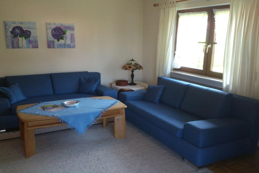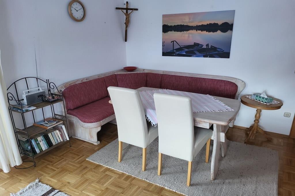 Großzügige und komplett ausgestattete Ferienwohnung in Toplage. Eigener West-Balkon mit herrlichem Bergblick, Wohn-/Esszimmer mit Balkonzugang, SAT-TV, WLAN kostenfrei separate komplett eingerichtete Küche mit Balkonzugang großzügige Diele mit Garderobe und großem Spiegel Dusche/WC. Parkplatz, täglich Brötchen-Lieferservice bis an Ihre Wohnungstüre. Bahnreisende werden selbstverständlich vom Bahnhof abgeholt. Einstellmöglichkeit für Fahrräder, Schlitten und Skier.