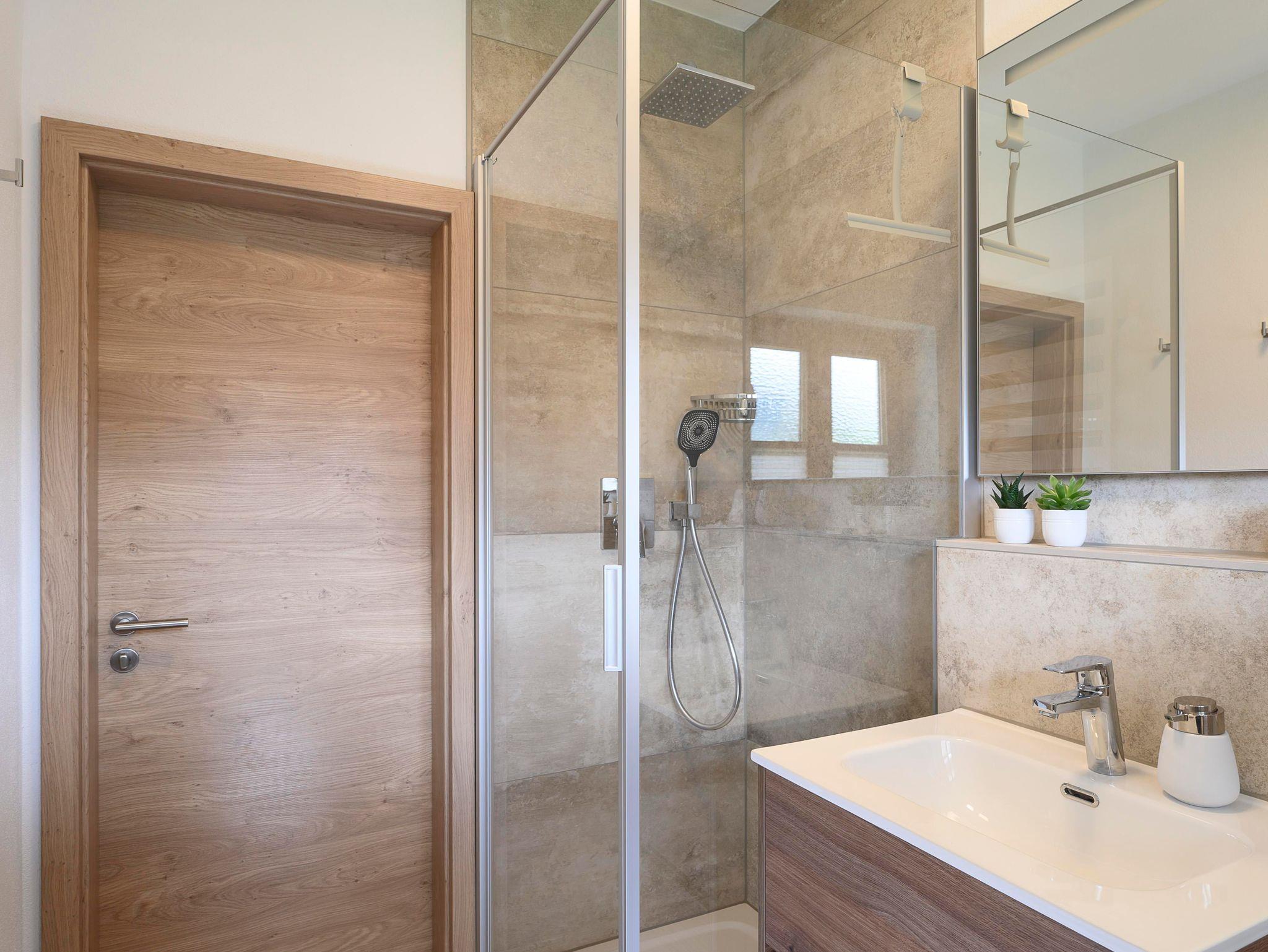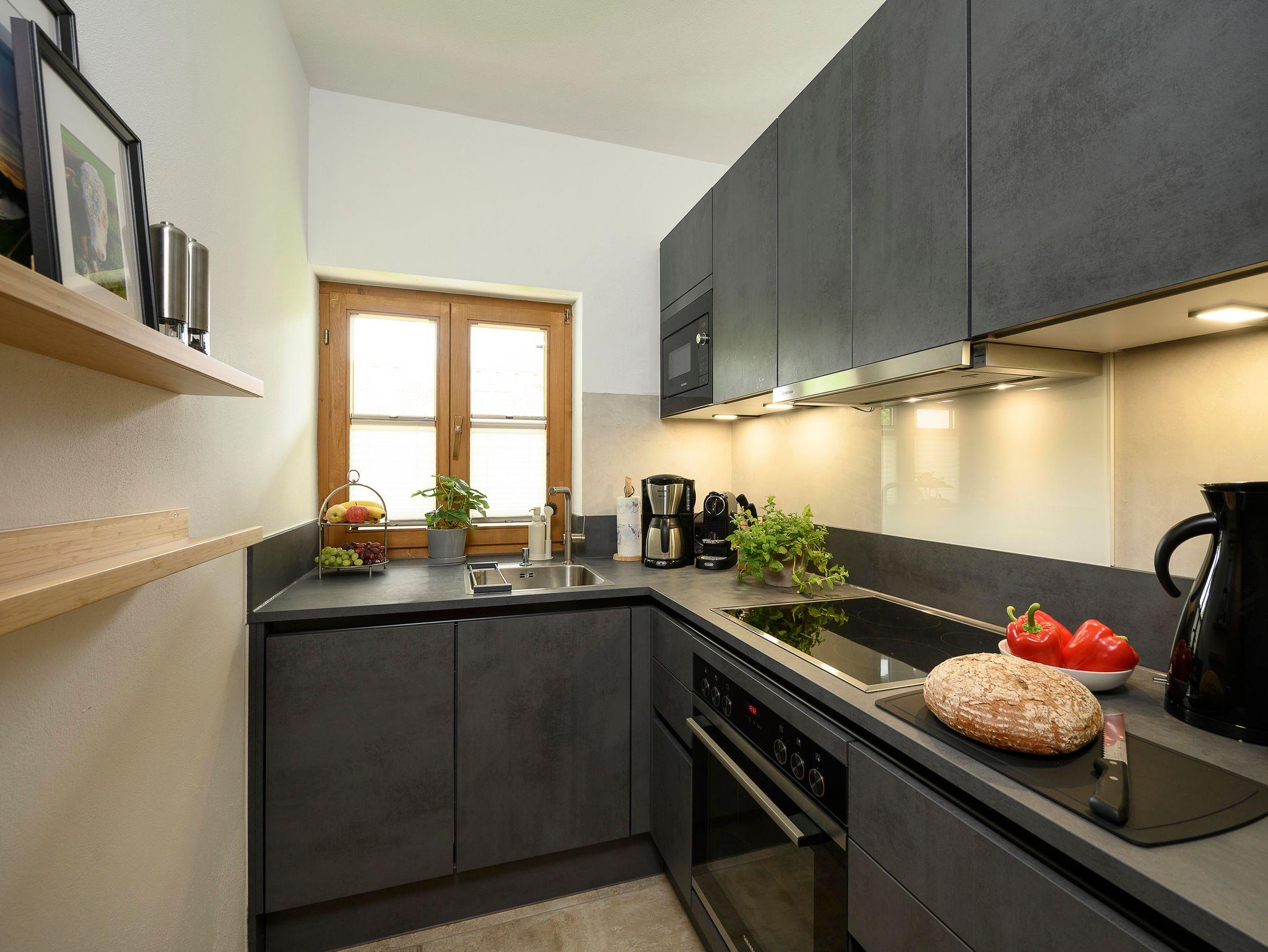 Die moderne Küche ist mit allen nötigen und qualitativ hochwertigen Küchenutensilien und technischen Geräten wie z.B. Spülmaschine, Ofen, Mikrowelle, Filterkaffee- und Nespressomaschine ausgestattet. Im stilvollen Badezimmer können Sie den Tag mit einer erfrischenden Regendusche beginnen.
