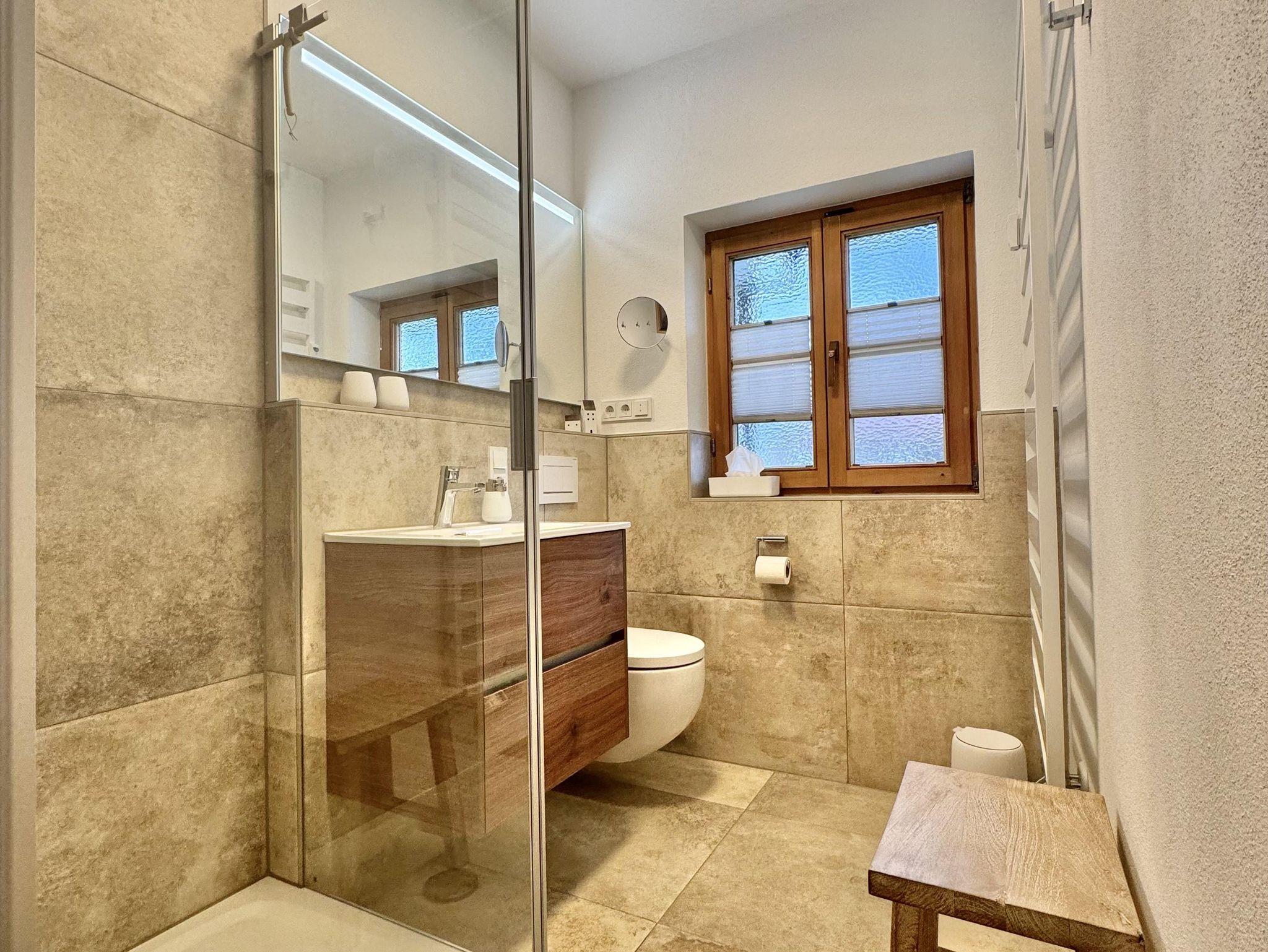 Ruhe pur, mit beeindruckendem Blick auf die Berge (Kofel, Laber) und dennoch zentrumsnah. Die modern-alpine Ferienwohnung befindet sich im 1. Stock eines Mehr-Familienhauses.