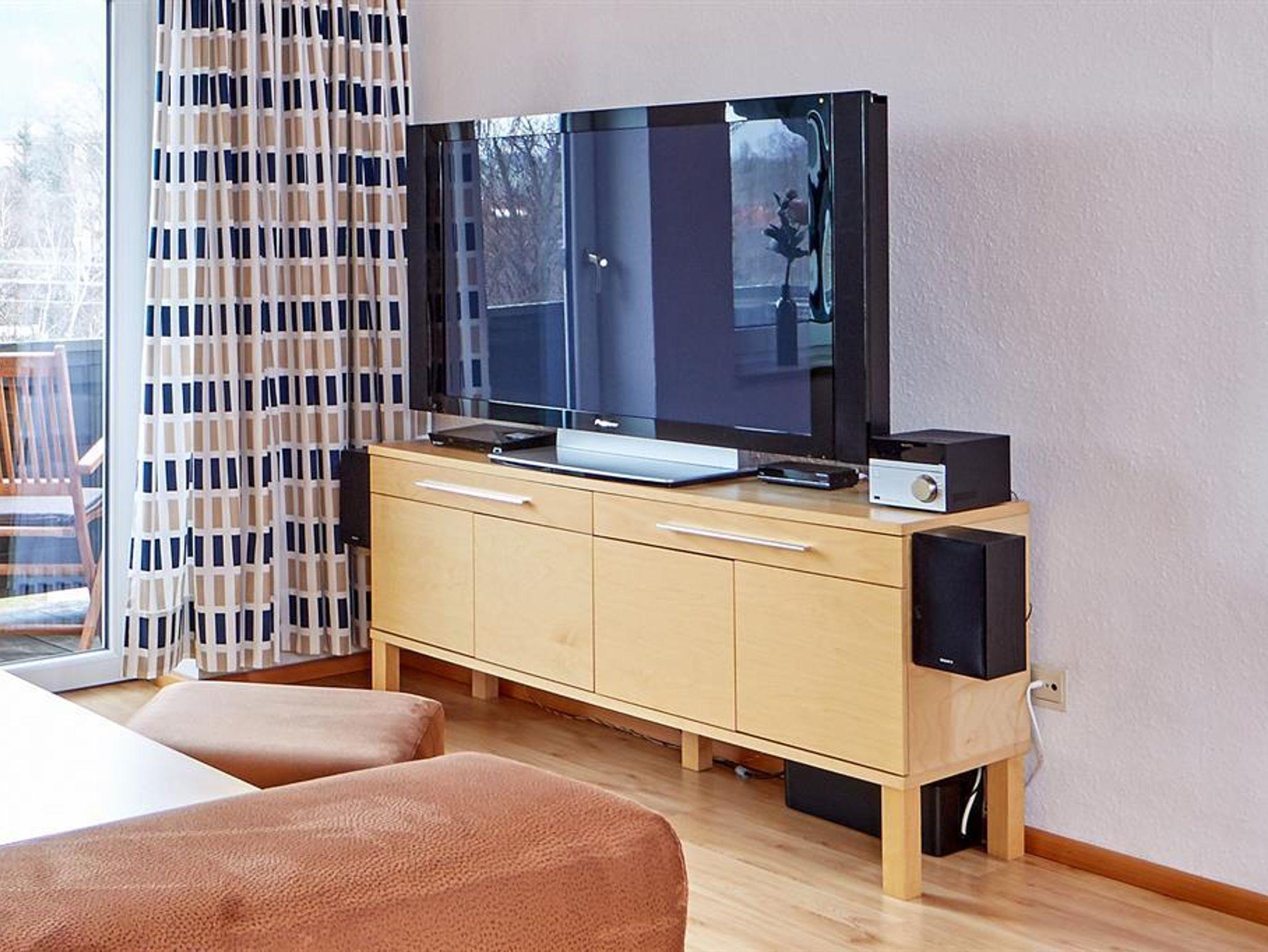 Unsere geräumige, moderne und familienfreundliche Ferienwohnung mit 78 qm liegt im 3. OG eines zentral gelegenen Mehrfamilienhauses und ist eine Nichtraucherwohnung. Die Wohnung bietet bis zu sechs Personen Übernachtungsmöglichkeiten. Sie besteht aus Wohnzimmer, zwei separaten Schlafzimmern, einem Kinderzimmer sowie einer Empore zum Spielen für Kinder und als zusätzliche Übernachtungsmöglichkeit für junge Gäste. Herzstück der Wohnung ist das großzügige Wohnzimmer mit Essbereich und einer modernen Multimedia-Anlage: Flachbildschirm 55, Blueray-/DVD-Spieler, Audioanlage für DVD´s, Rundfunk sowie iPod-/MP-3 Player (bitte hierfür entsprechendes USB-Kabel mitbringen.) Vom Wohnzimmer und vom Schlafzimmer mit Doppelbett betreten Sie den Balkon mit Blick auf die Berge. Vom Wohnzimmer aus geht es auf die Empore. Hier finden Sie zusätzlich ein großes Bett für einen Erwachsenen. Außerdem ist die Empore ein beliebter Spielplatz für Kinder. In dem gemütlichen Einzelschlafzimmer besteht die Möglichkeit, ein zweites Bett auszuziehen. Außerdem gibt es ein separates Kinderzimmer mit Einzelbett und Kleinkinderbett sowie Spielsachen Die Wohnung verfügt über eine geräumige Diele, eine modern eingerichtete Küche, Duschbad sowie Balkon mit Blick in die Berge. Parkplatz im Hof. Im Erdgeschoss des Hauses können Sie im Restaurant Mundart junge bayerische Küche genießen (wochentags ab 17:00 Uhr, am Wochenende ab 11:00 Uhr geöffnet. Unbedingt reservieren!) Die Wohnung liegt zentral, in unmittelbarer Nähe von Wander- und Radwegen sowie Loipen und Skiliften. Einkaufsmöglichkeiten, Restaurants und Imbissmöglichkeiten finden Sie in der nächsten Umgebung. In wenigen Gehminuten erreichen Sie das Zentrum von Oberammergau mit dem Festspielhaus.