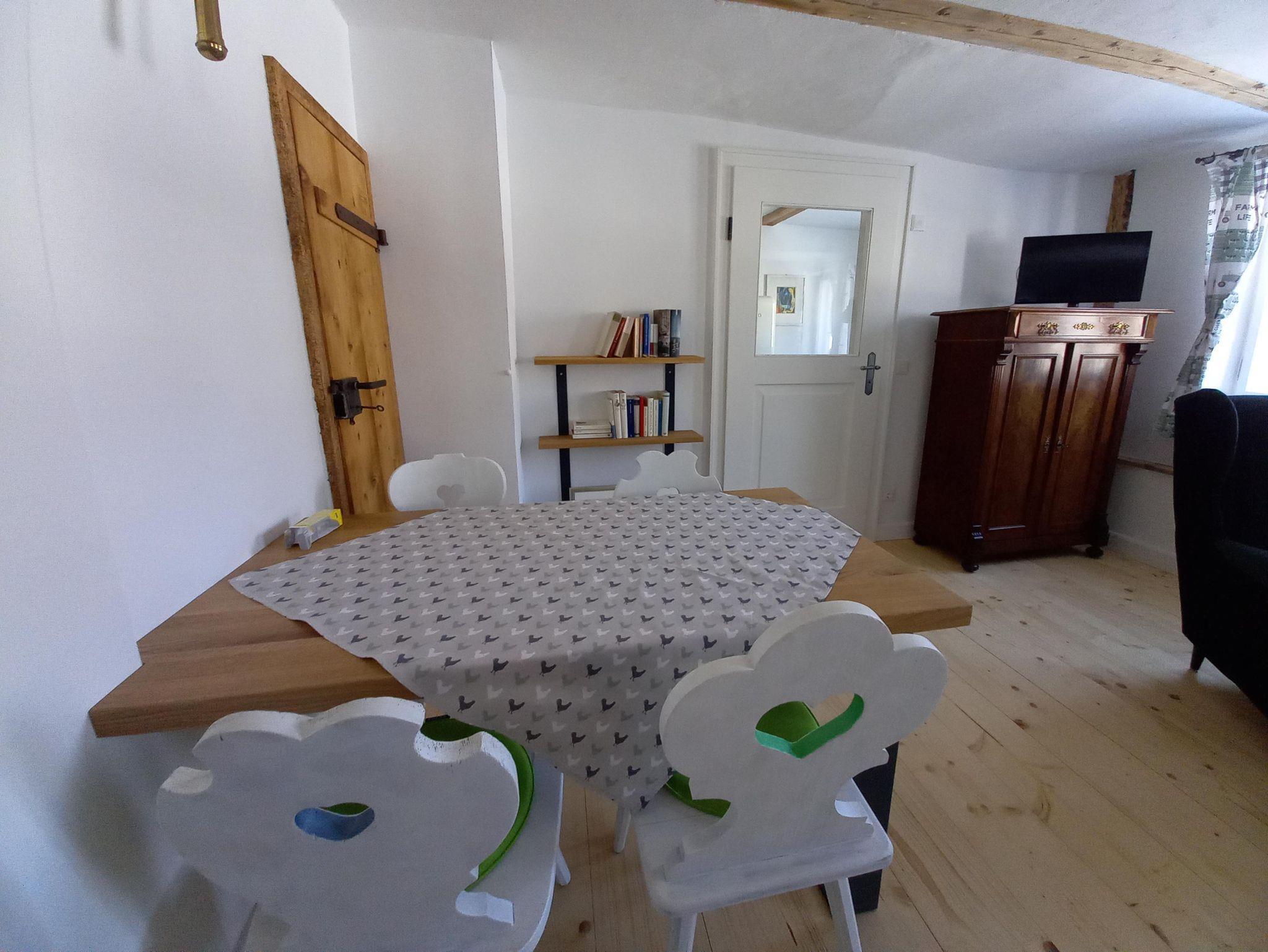 Die Ferienwohnung Waldgrün liegt auf der Westseite vom Hennalahaus, frisch renoviert verfügt sie im Erdgeschoß über ein originelles Wohnzimmer mit Sat-TV und Esstisch und eine voll ausgestattete Küche mit Backofen und Spülmaschine. Im ersten Stock befinden sich zwei Schlafzimmer, eines davon, das größere, mit Doppelbett, das kleinere mit zwei Einzelbetten. Im ersten Stock befindet sich auch das Badezimmer mit Dusche. Im ersten Stock beträgt die Deckenhöhe 2 Meter, da Sie sich in einem denkmalgeschützten Haus befinden, im Erdgeschoß ist die Deckenhöhe normal. Sie haben einen separaten Eingang, den nur Sie benutzen und einen eigenen Garten.