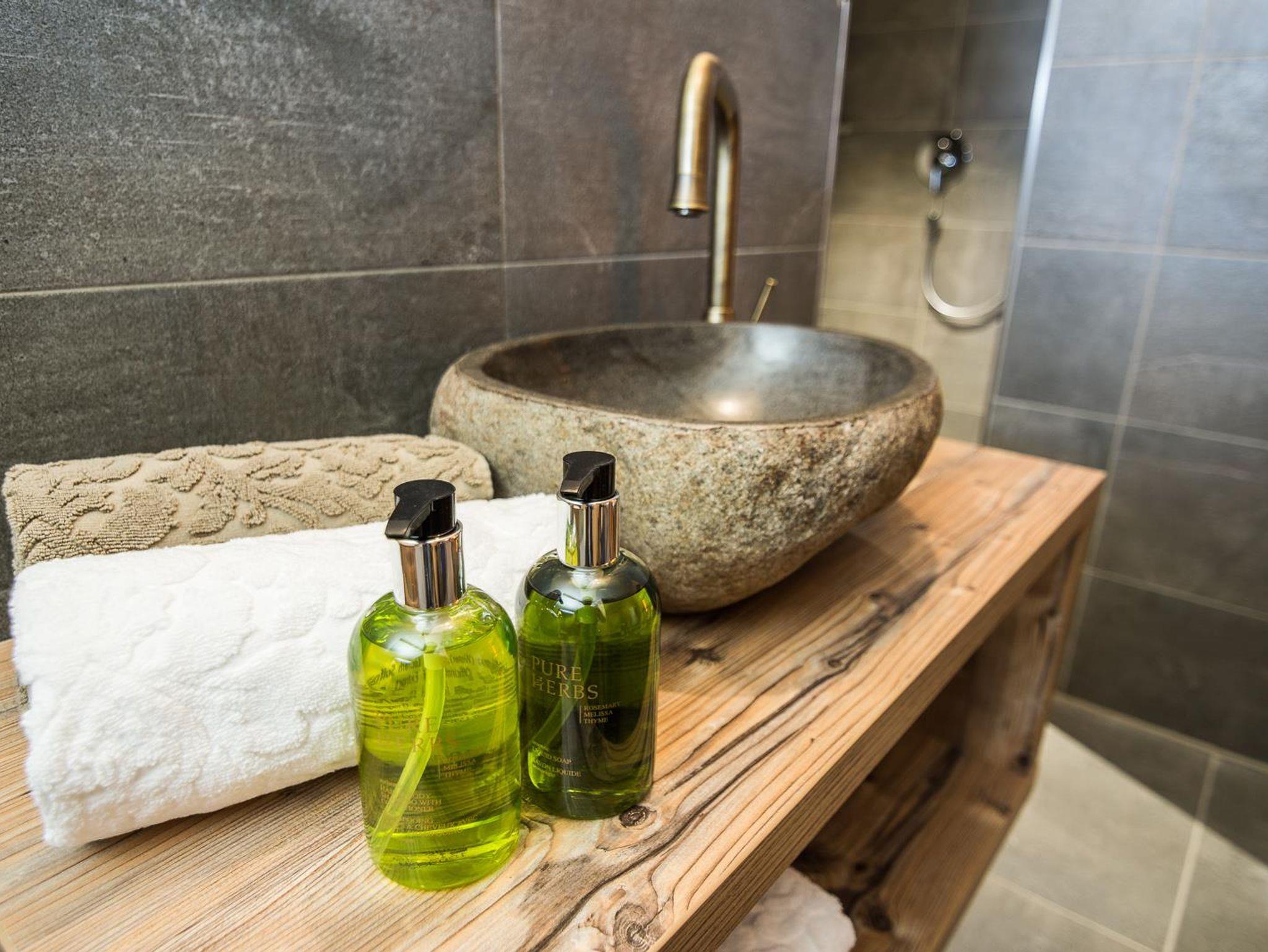 …und hochwertigen heimische Materialien spiegeln die heimische Umgebung. Eine große Terrasse zur Südseite, Wohlfühl-Ambiente und ländlicher Charme laden Sie zu einer erholsamen „AusZeit“ ein.