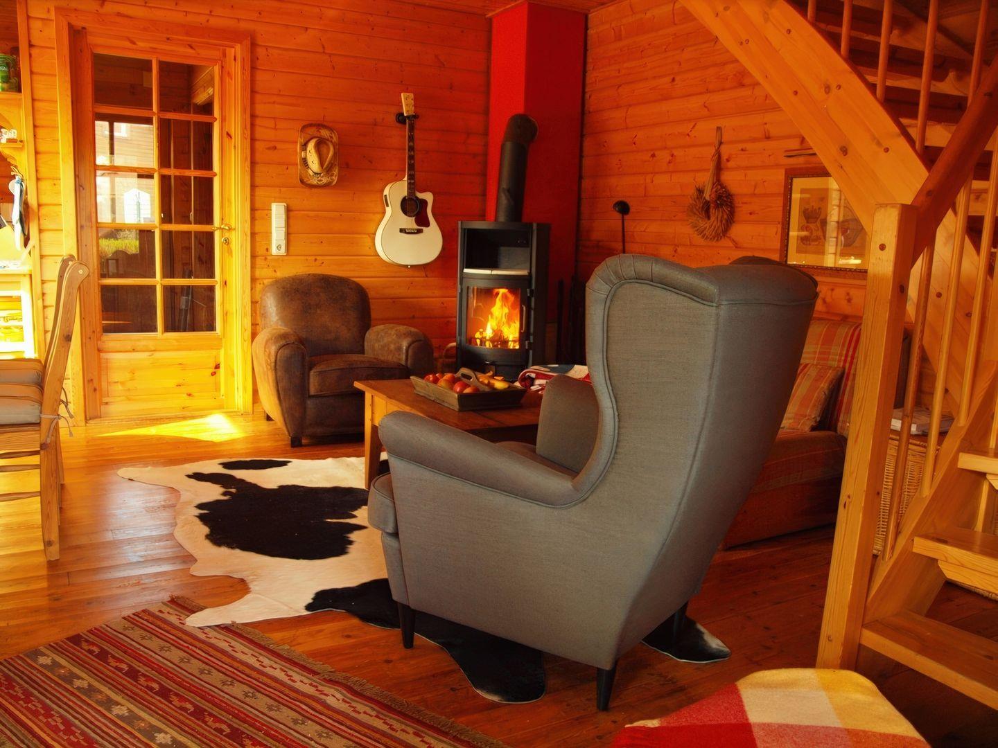 Gemütliches Ferienhaus mit Kamin im Westernstiel eingerichet.