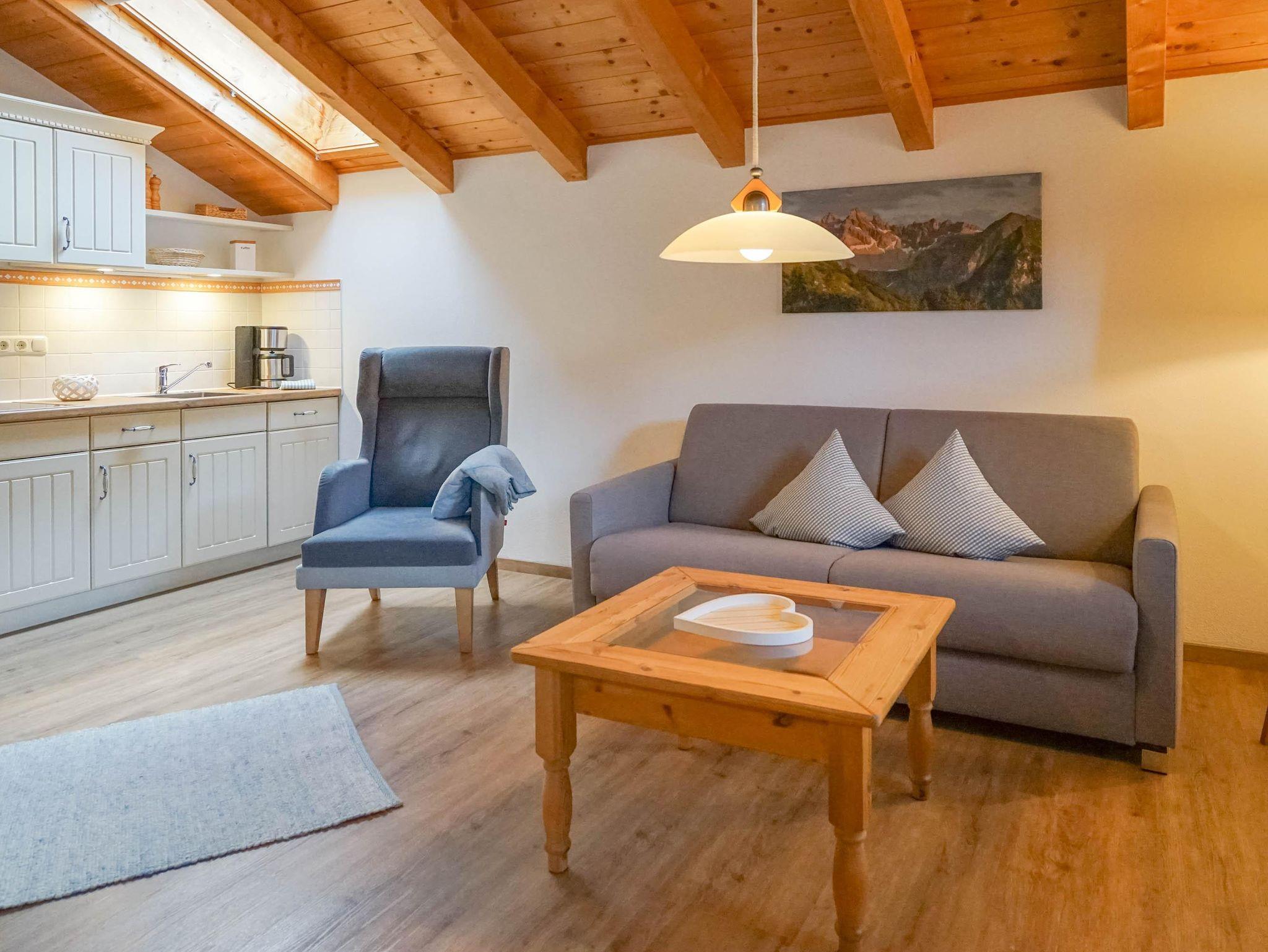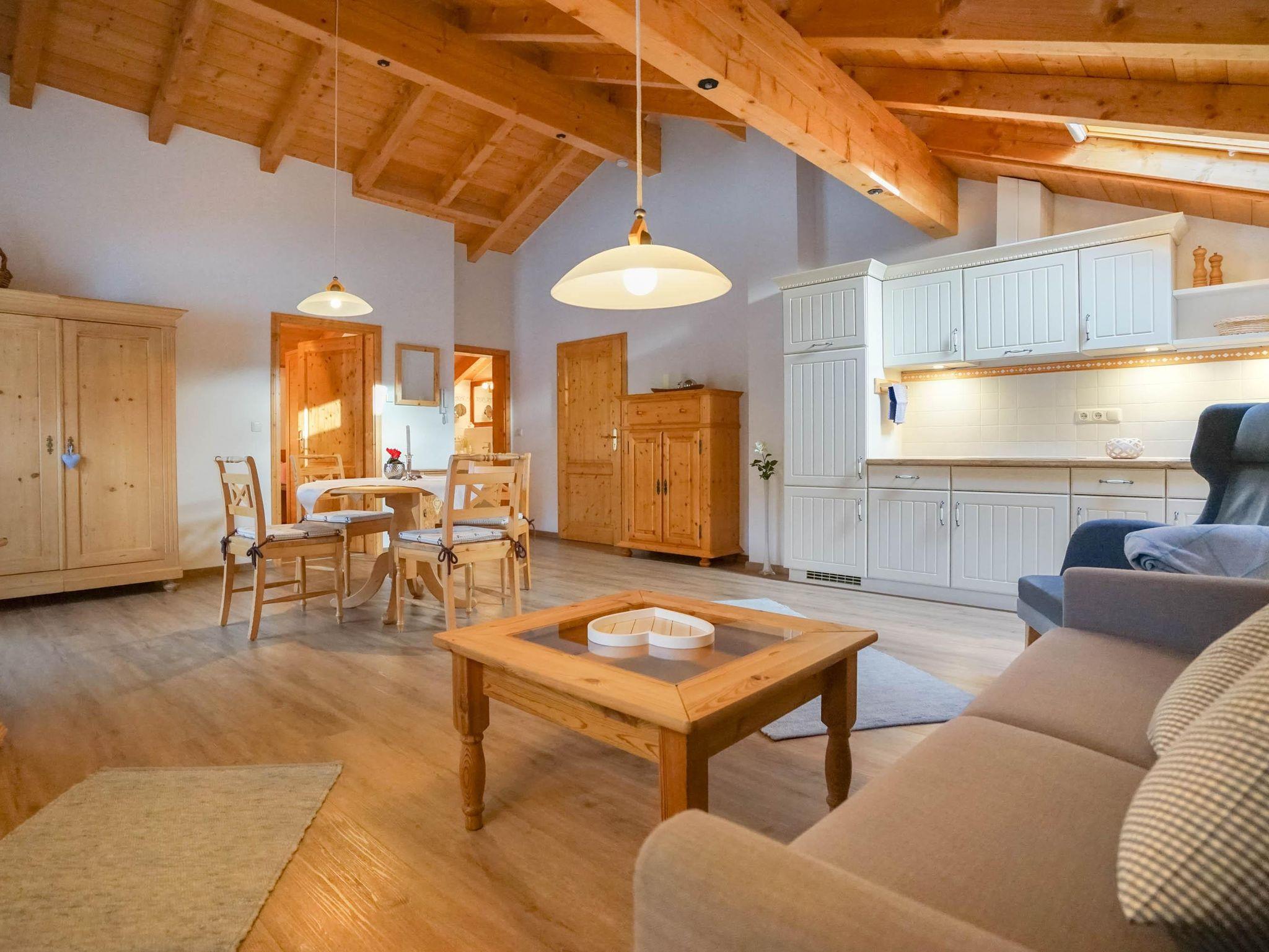 Die hochwertig und gemütlich eingerichtete Wohnung mit sichtbarem Dachstuhl aus warmen Fichtenholz schafft eine enspannte Wohlfühlatmosphäre - perfekt für einen gelungenen Urlaub.