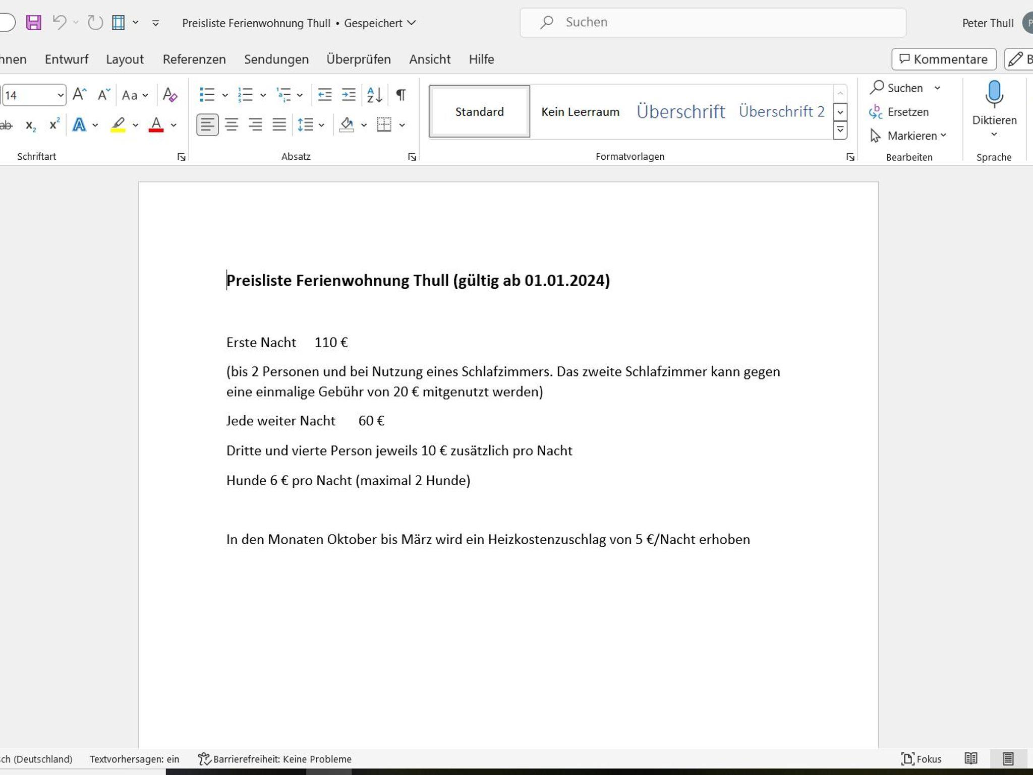 - Kurzurlaub möglich Ja