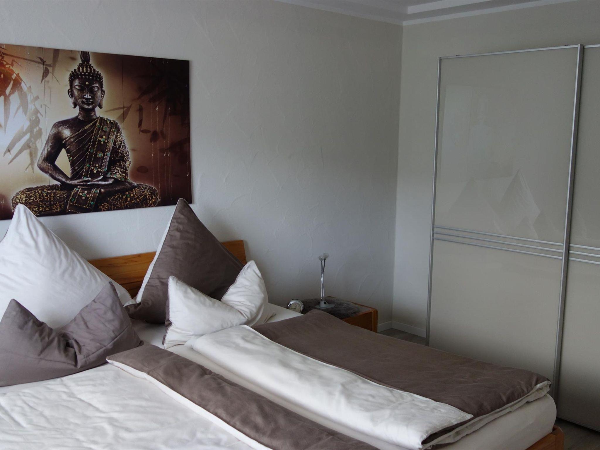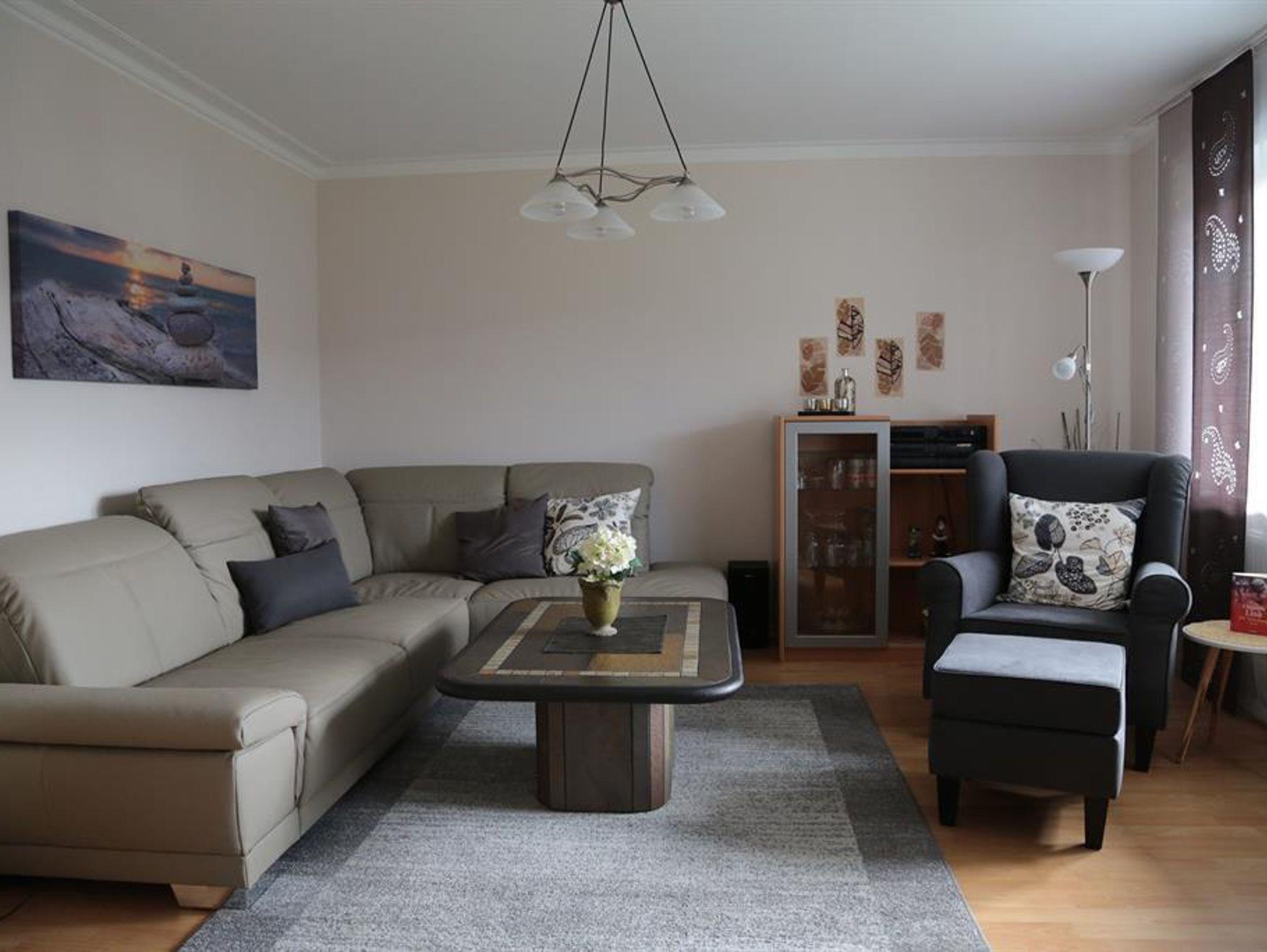 Die neu eingerichtete Wohnung ist ca. 90 m² groß. Sie verfügt über zwei separate Schlafzimmer mit Doppelbetten, Wohnzimmer, komplett eingerichtete Küche, Bad/Dusche/WC. Außen lädt eine große Terrasse zum Entspannen oder Grillen ein.