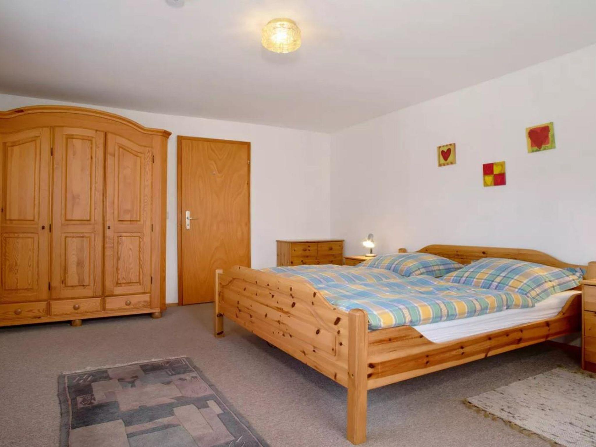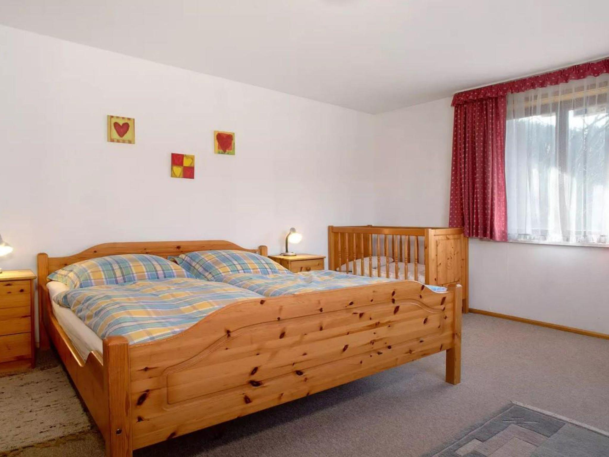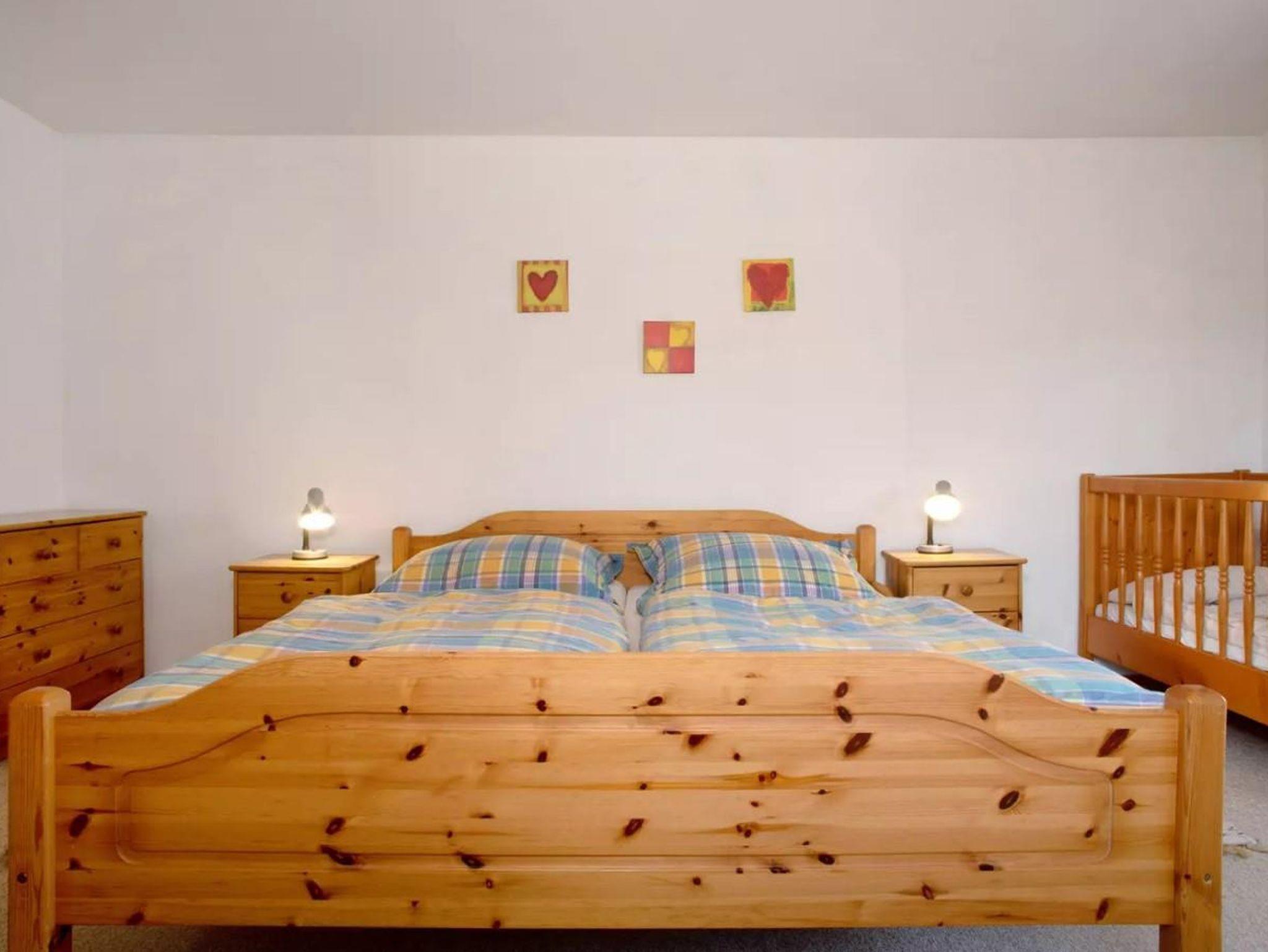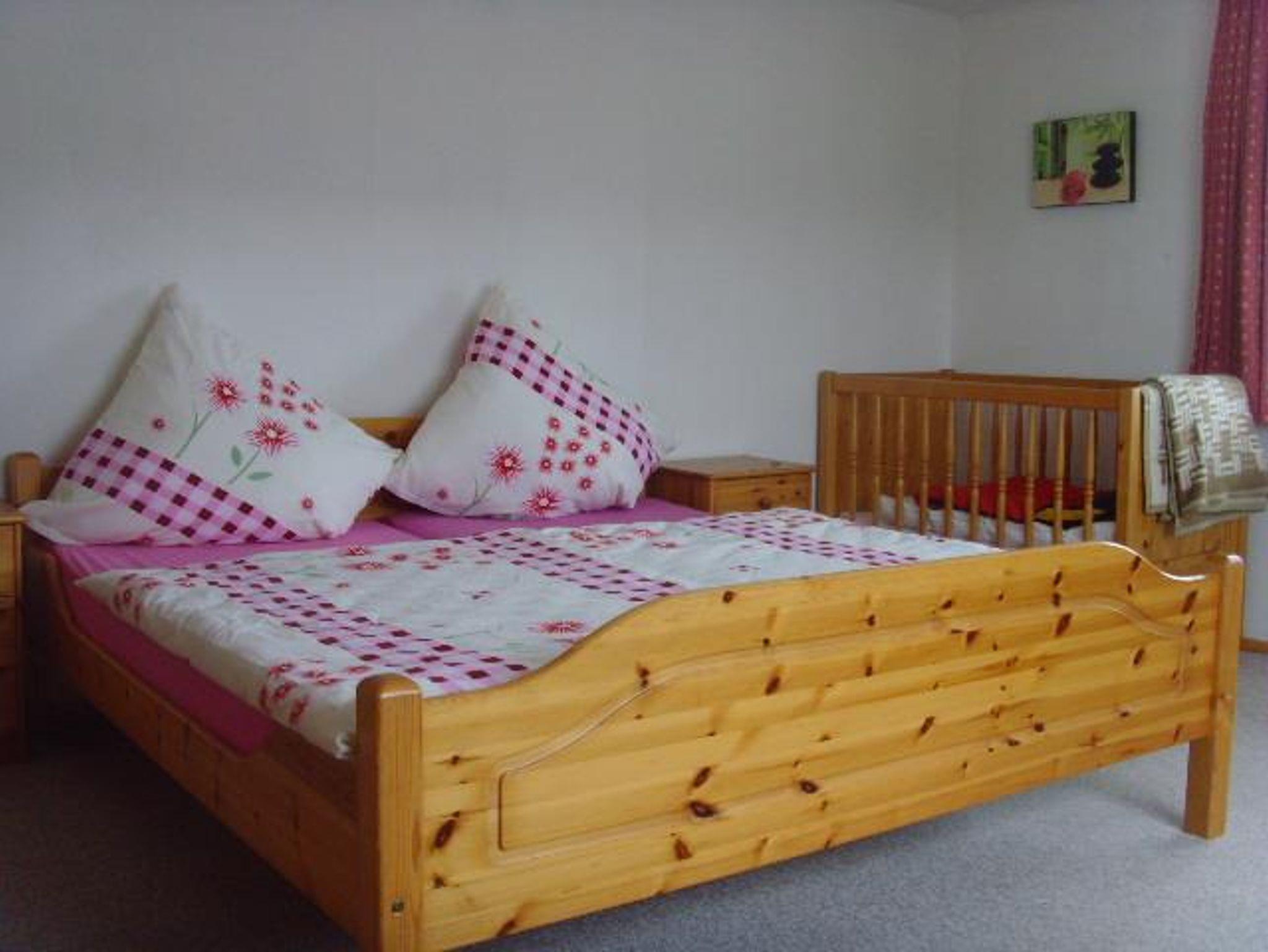 Schlafzimmer 1: Ein Doppel-Bett und ein Kindergitterbett.