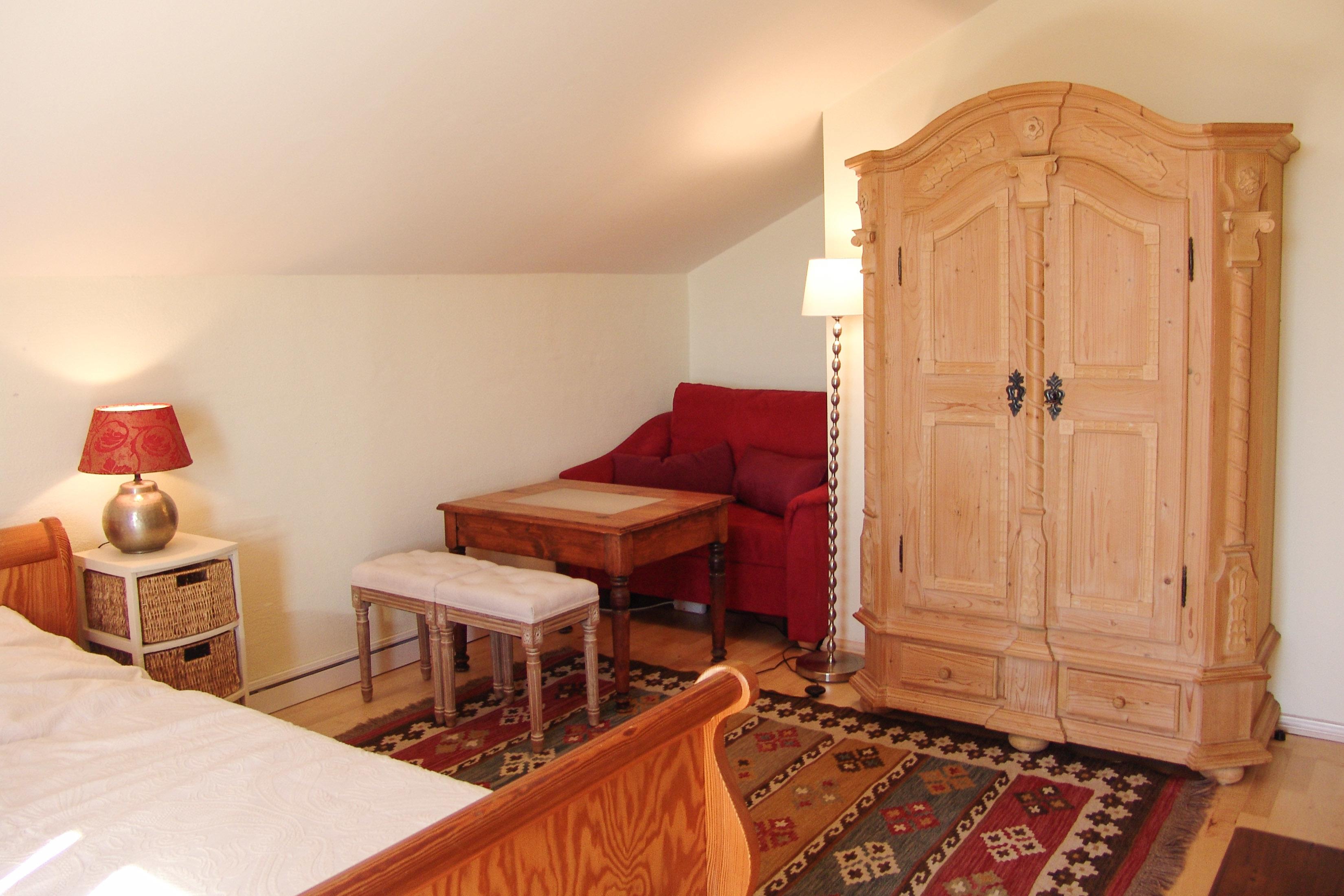 Sie betreten das Haus über einen großzügigen, möblierten Eingangsbereich mit Klavier, der als gemeinsamer Treffpunkt von allen Personen genutzt werden kann. Im Haus befinden sich zwei große Wohneinheiten. Die Wohnung im Dachgeschoss verfügt über 4 Zimmer mit 4 Duschbädern und 6 Betten, sowie über eine voll ausgestattete Wohnküche. Das Loft im Erdgeschoss verfügt über 2 Schlafzimmer mit 2 Einzelbetten und einem großen Bett, ein Badezimmer, eine voll ausgestattete offene Küche und einen großen Ess- und Wohnbereich, in dem sich auch der Holzscheitkamin befindet. Aufbettungen sind auf Anfrage möglich.