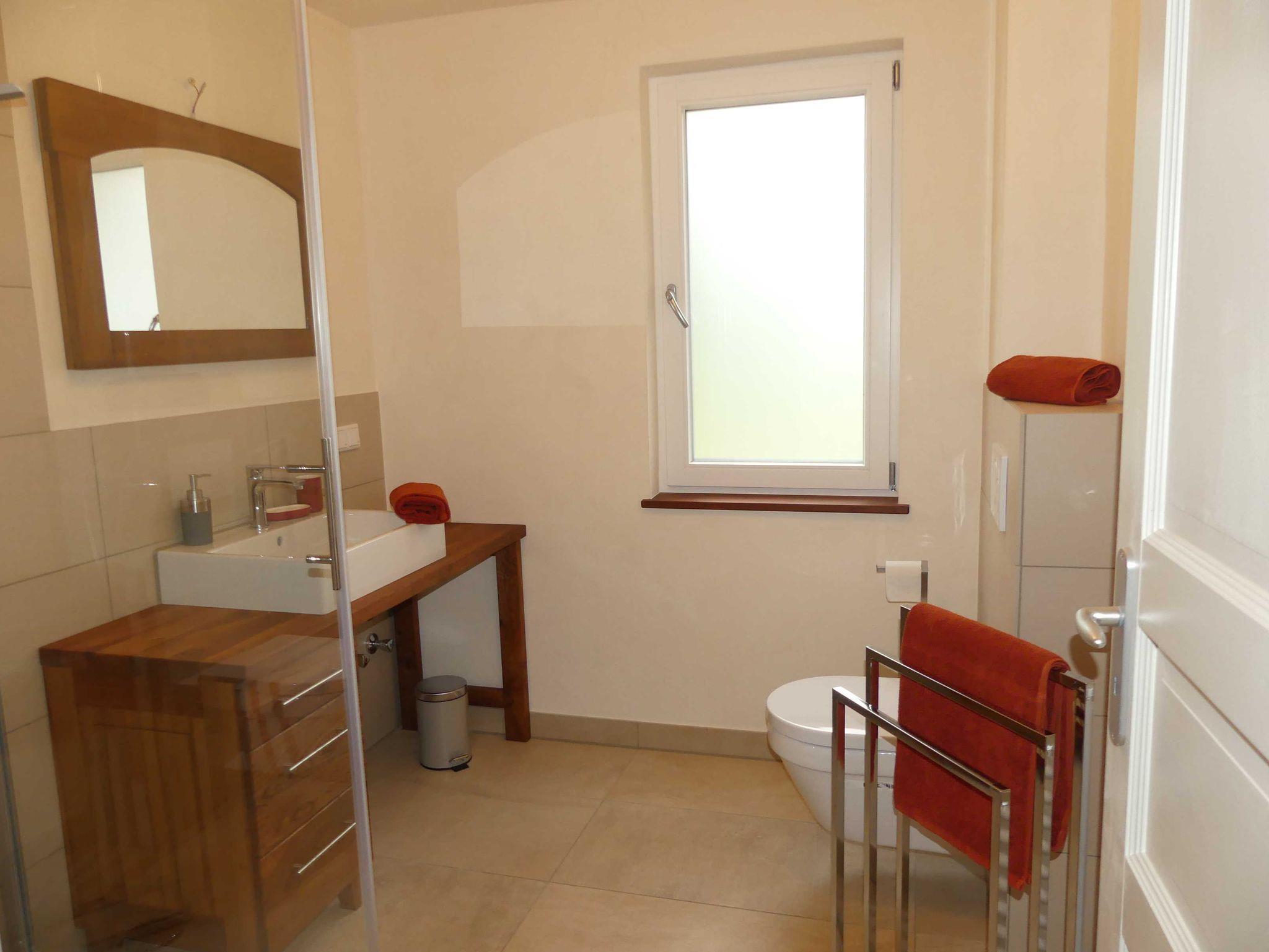 Die Wohnung m ersten Stockwerk ist aufgeteilt in ein gemütliches Wohnzimmer mit Fernseher, eine großzügige und komplett eingerichtete Wohnküche. 2 Schlafzimmer mit zwei Einzelbetten oder einem Doppelbett sorgen für einen erholsamen Schlaf. Das moderne Bad mit Dusche und WC ist mit Handtüchern und einem Haartrockner ausgestattet. Vom Wohnzimmer mit anschließendem Balkon haben Sie einen herrlichen Blick über die Felder und Wiesen des Airlenbacher Tals; ein idealer Ausgangsort für erholsame Wanderungen und ausgedehnte Mountain-Bike Touren oder um die Seele baumeln zu lassen.
