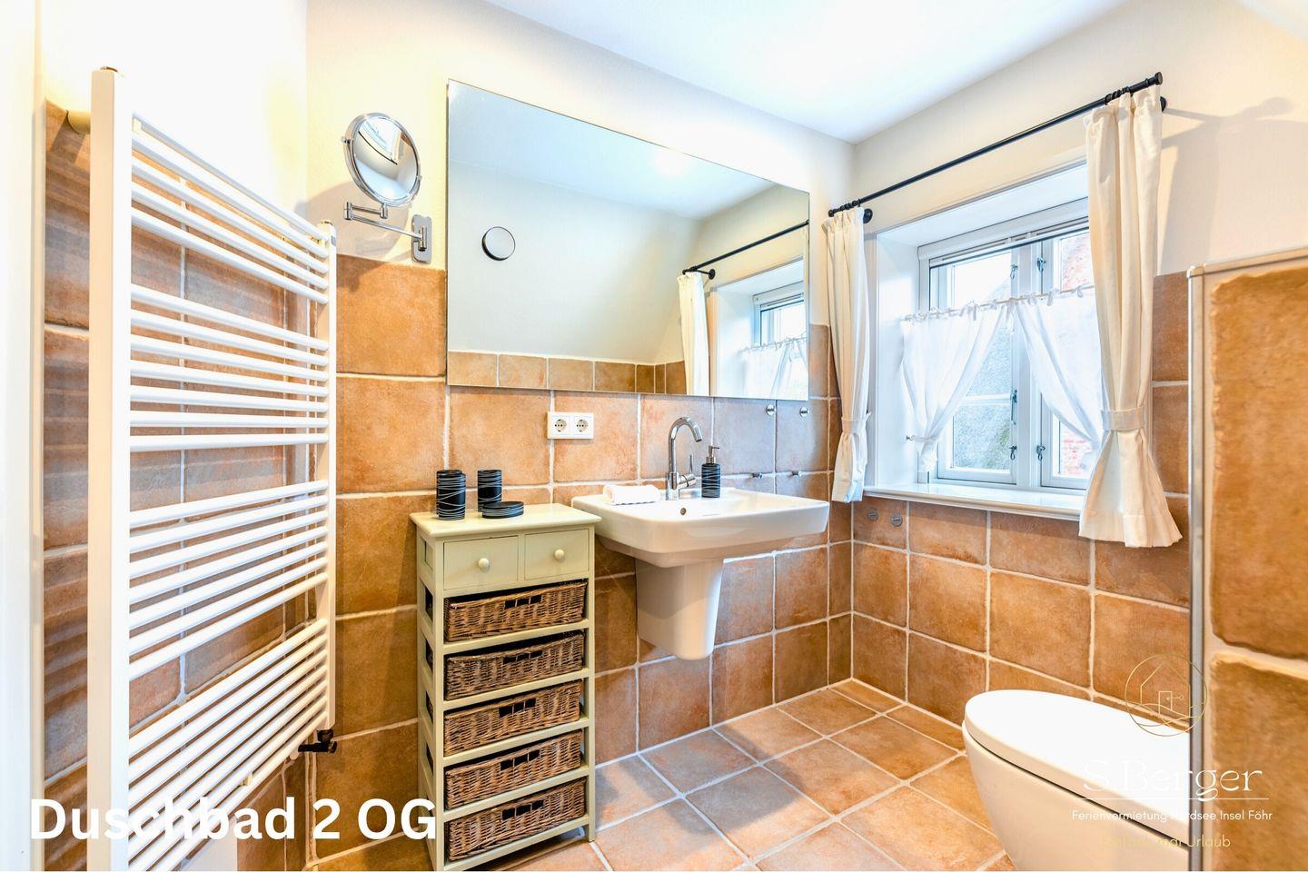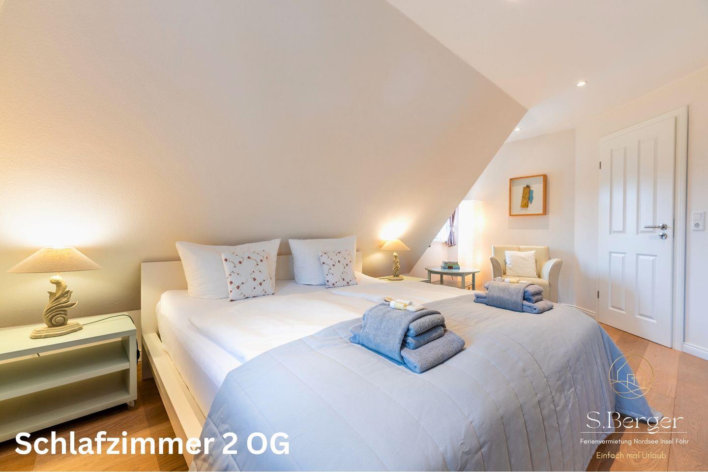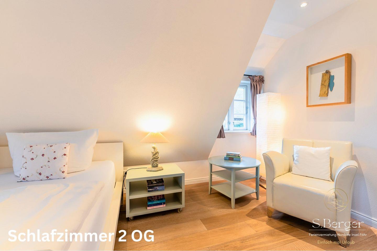 Zwei liebevoll gestaltete Schlafzimmer im Obergeschoss sorgen für erholsamen Schlaf. Das Duschbad verfügt über eine ebenerdige Dusche mit WC.