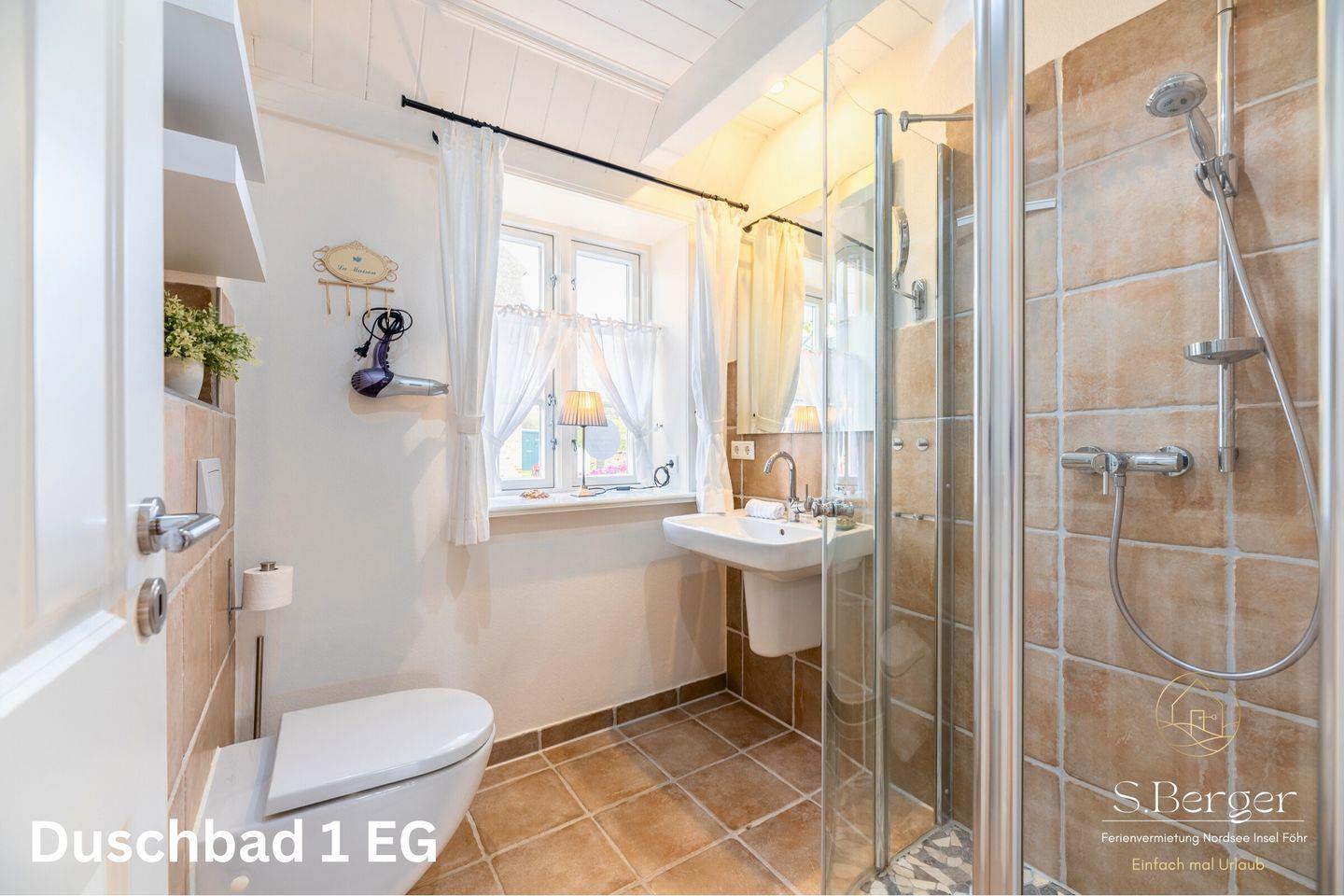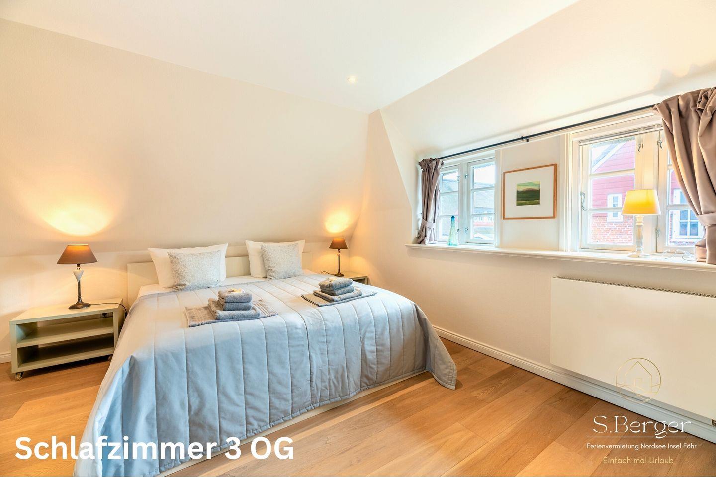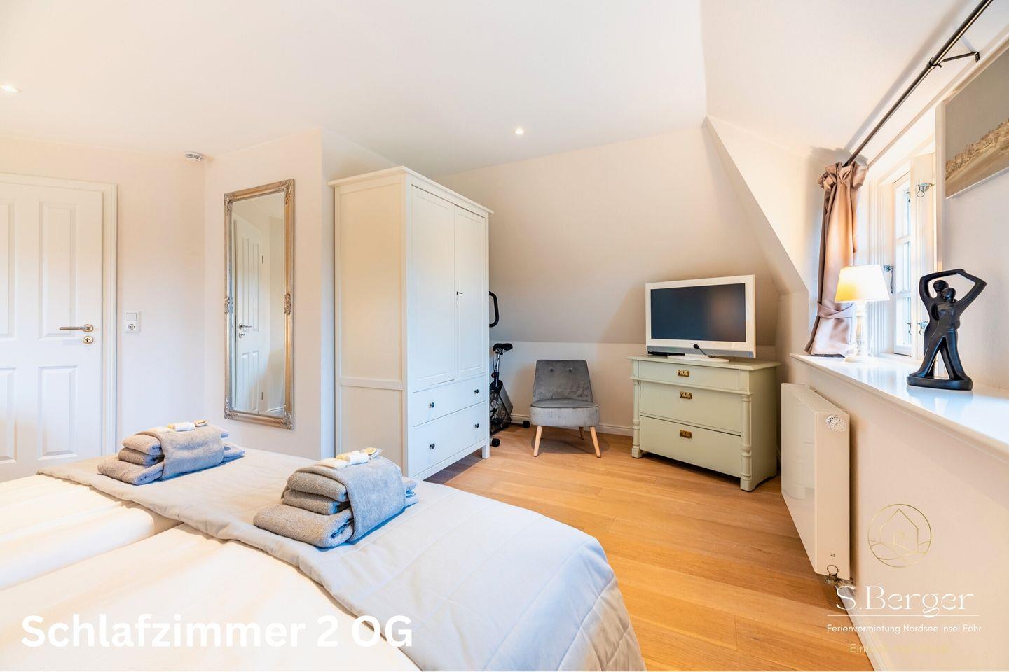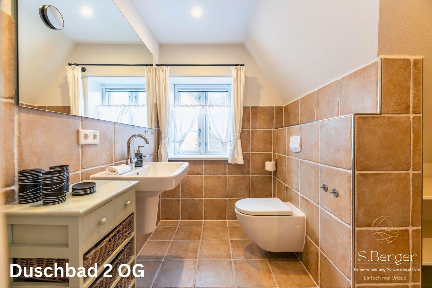 Zwei liebevoll gestaltete Schlafzimmer im Obergeschoss sorgen für erholsamen Schlaf. Das Duschbad verfügt über eine ebenerdige Dusche mit WC.