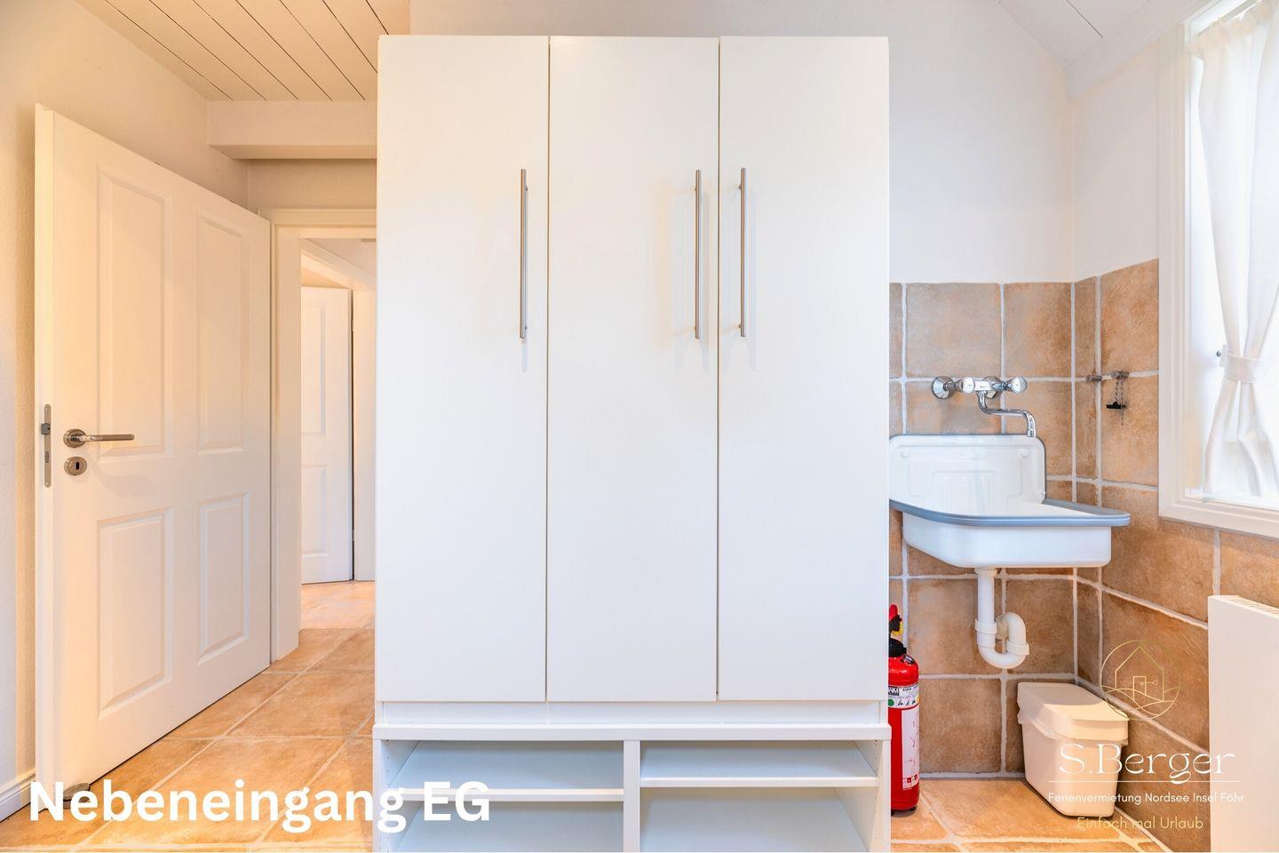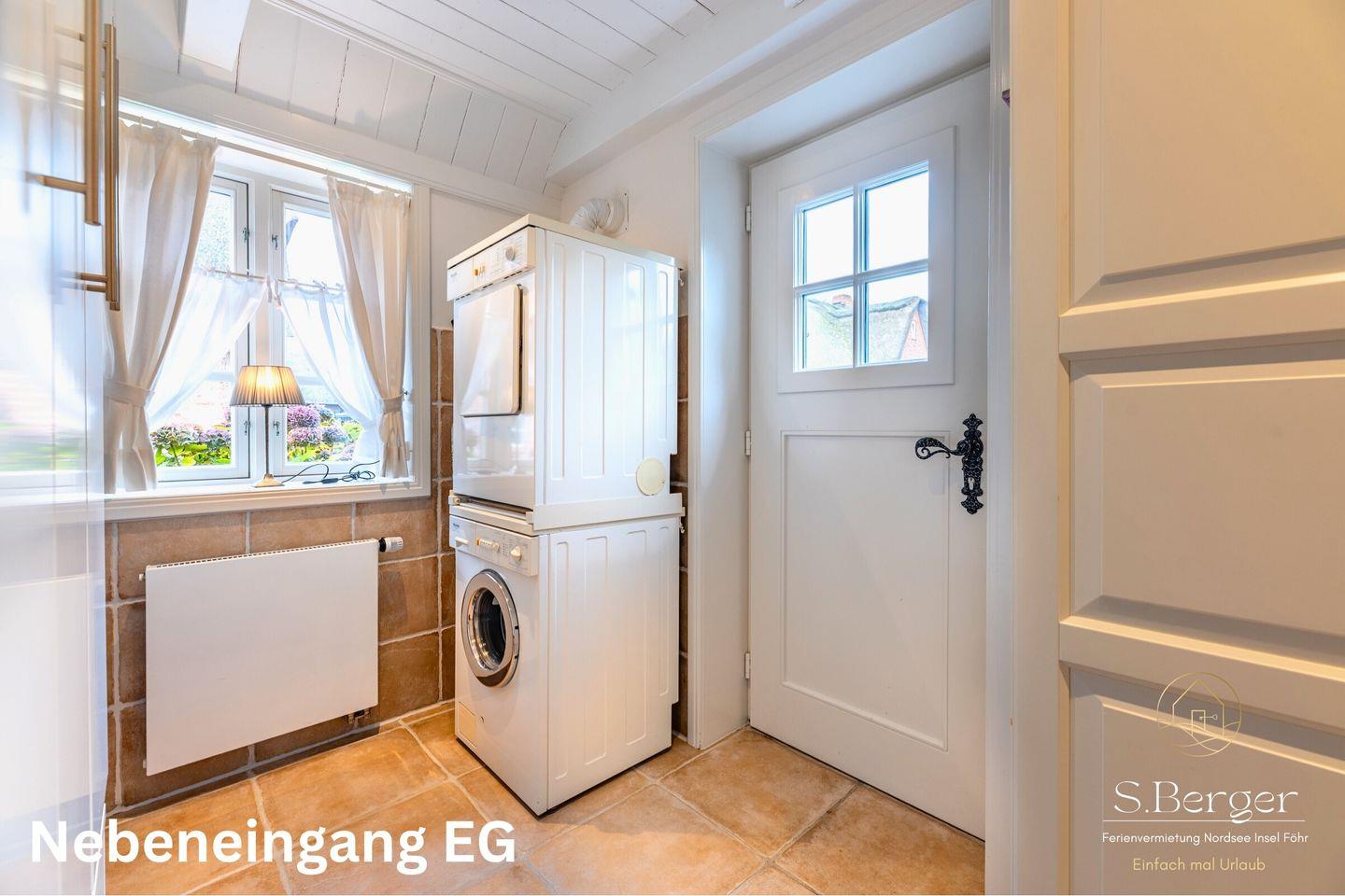 Waschmaschine, Trockner, Strandkorb am Haus, Strandkorb am Wyk'er Strand.