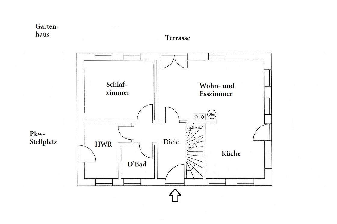 Der offene Wohn- und Essbereich besticht durch eine einladende Sofaecke, einen Esstisch und einen Flachbildfernseher. Die moderne Küche ist mit einem Herd, einem Backofen, einem Geschirrspüler und weiteren Annehmlichkeiten ausgestattet. Das helle Wohn- und Esszimmer mit offener Küche beherbergt einen antiken Kachelofen von Mylin. Des Weiteren gibt es ein Schlafzimmer im Erdgeschoss sowie einen Hauswirtschaftsraum mit eigener Eingangstür, der mit einer Waschmaschine und einem Trockner ausgestattet ist. Im Erdgeschoss befindet sich zudem ein separates Badezimmer.