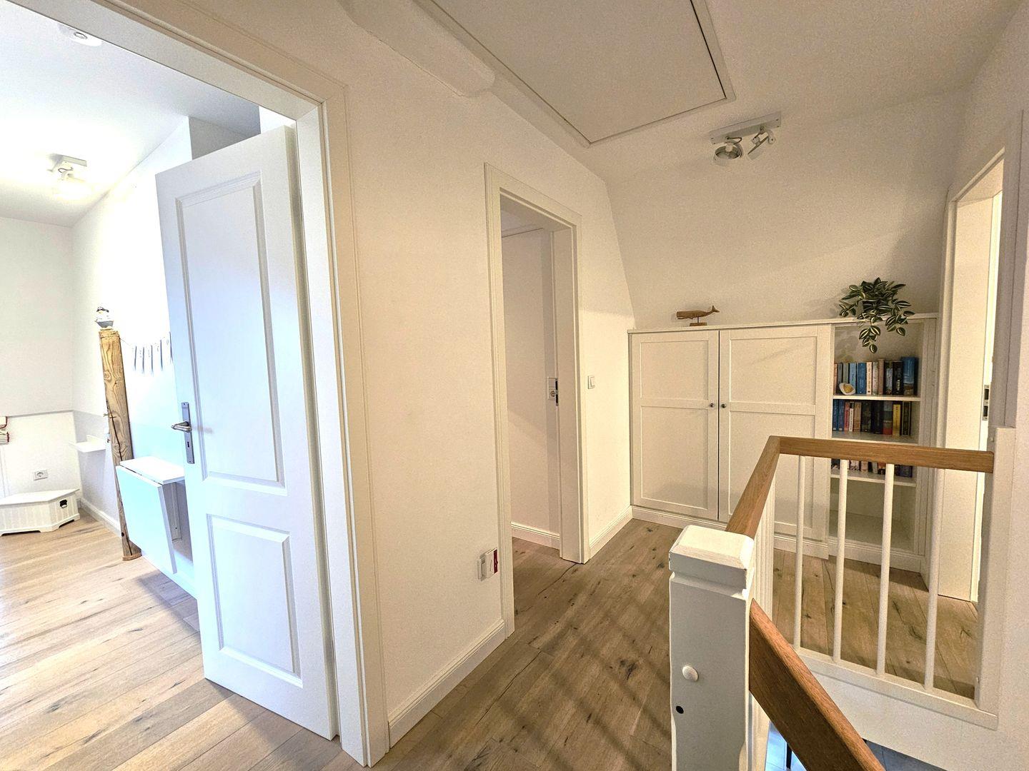 Das WattGut in Oevenum bietet auf 93 m² und 2 Etagen Platz für bis zu 6 Personen: 3 Schlafzimmer, 2 Badezimmer mit 2 Duschen, offener Wohnbereich mit Kaminofen. Voll ausgestattete Küche mit Backofen, Mikrowelle, Spülmaschine und 4-Platten-Herd. Sauna, WLAN, 3 TVs sowie Waschmaschine zur Eigennutzung. Terrasse mit Gartenmöbeln, Garten mit Schaukel, 1 Parkplatz; Haustiere bis max. 2 erlaubt. Strand/Meer ca. 3,6 km.