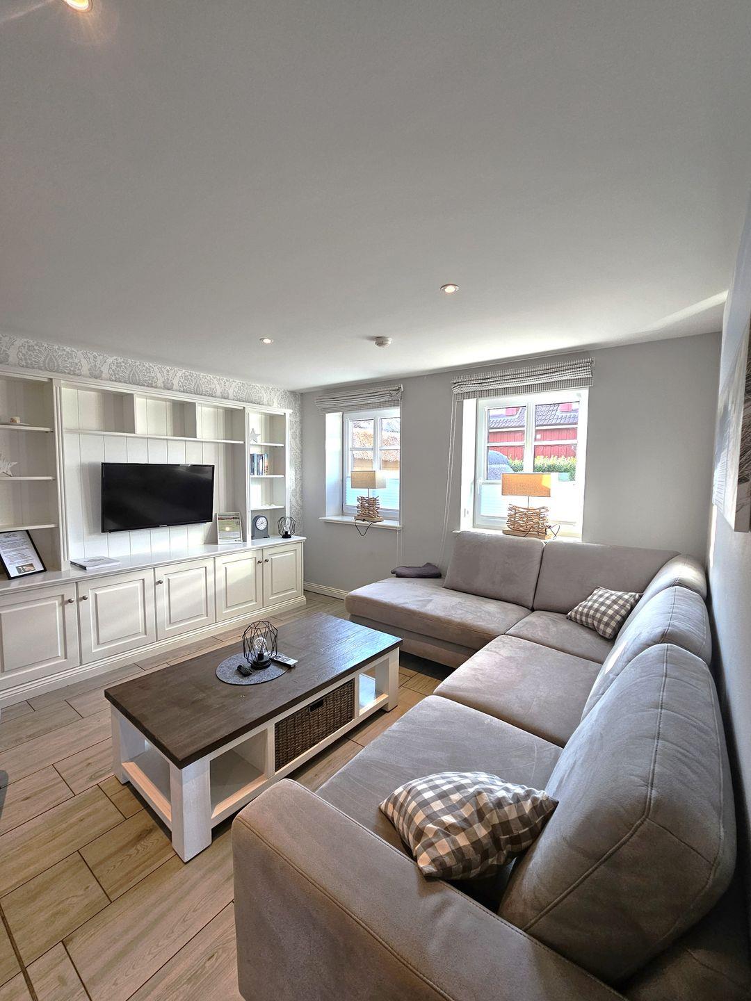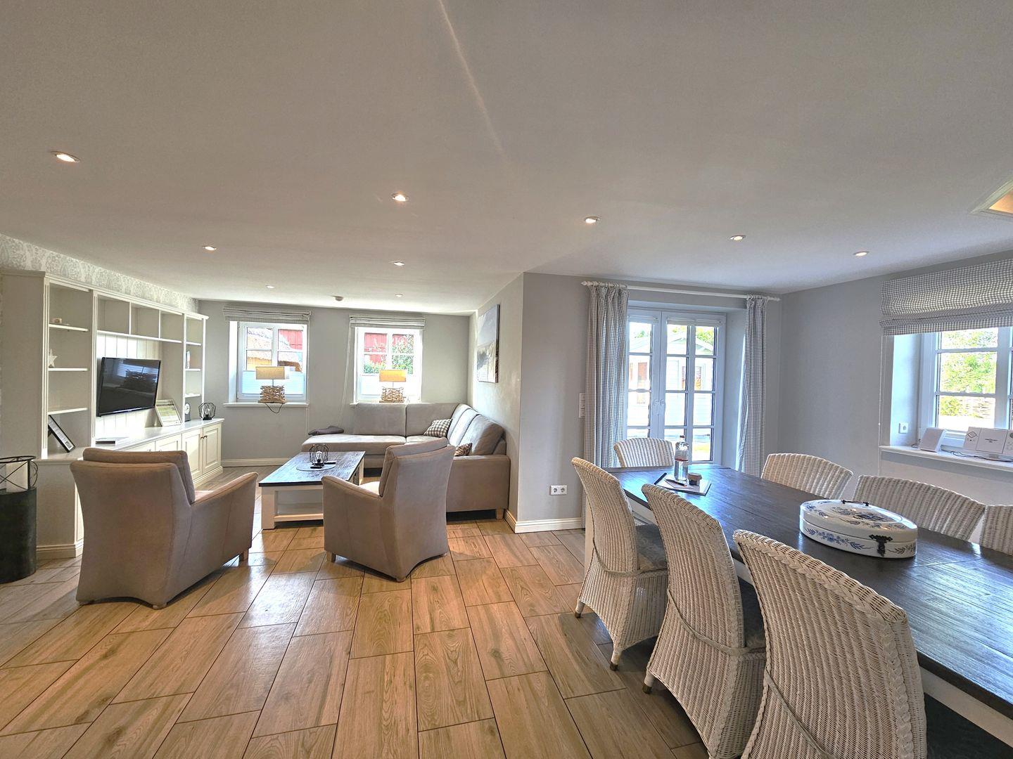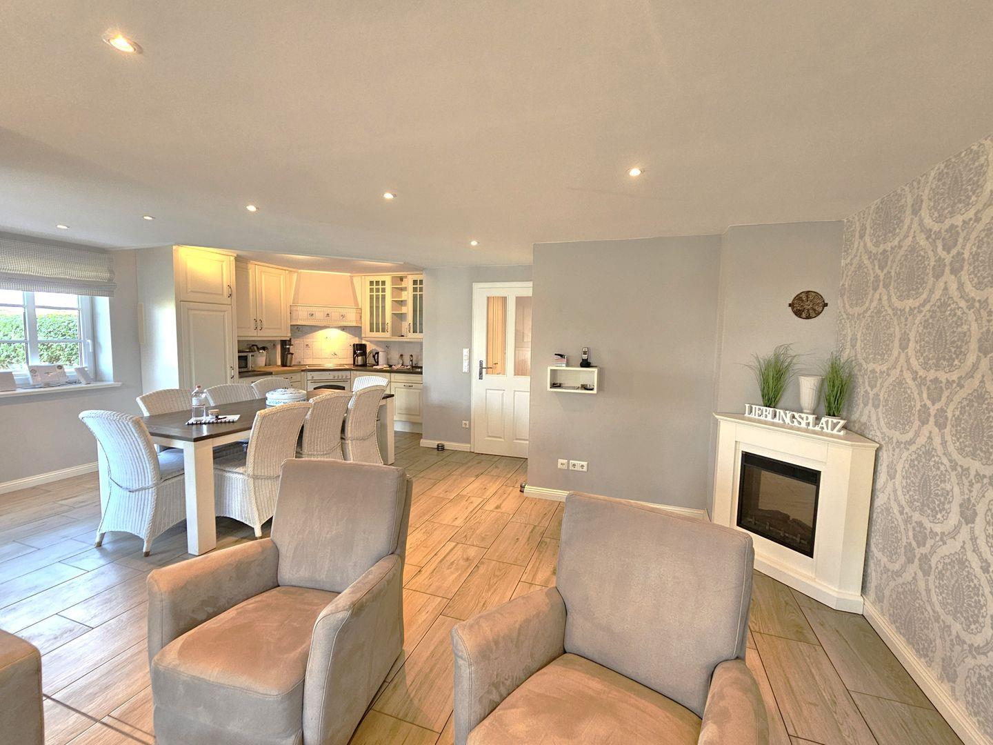 Der Wohnbereich liegt im Parterre und verbindet sich offen mit der Küche. Hier finden Sie einen Essbereich mit Esstisch sowie ein Sofa für entspannte Abende. Für Unterhaltung stehen insgesamt 3 TVs zur Verfügung, zusätzlich ein DVD-Spieler sowie CD-Spieler und Radio. WLAN/Internet ist vorhanden. Fußbodenheizung und Heizung sorgen in der kühleren Jahreszeit für angenehme Wärme.