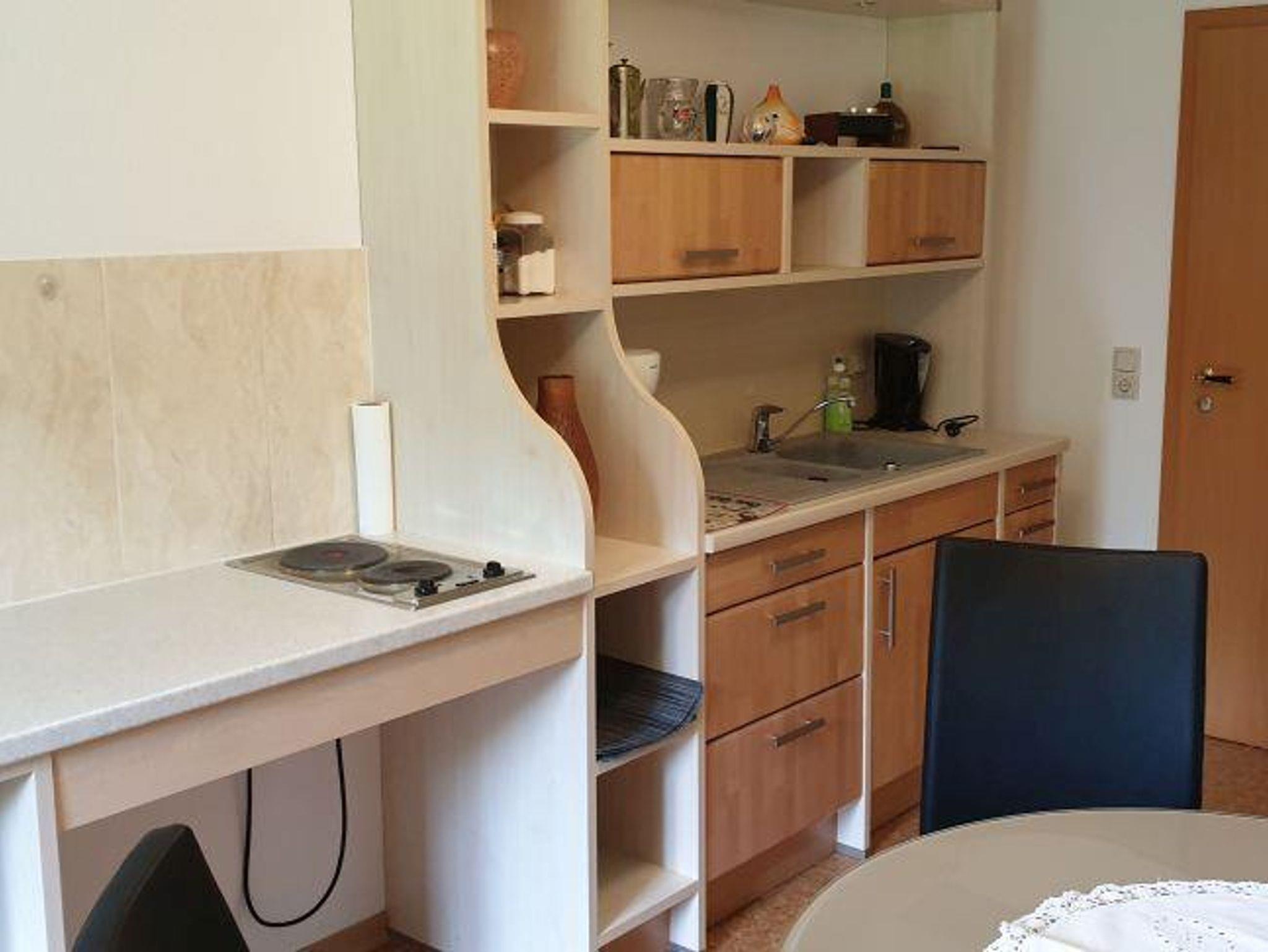 Die neu renovierte Ferienwohnung ist 45 m² groß, befindet sich im 1. Obergeschoss und verfügt über zwei Räume - eine Wohnküche und einen separaten Schlafraum, ein Bad und einen Balkon. Im Schlafzimmer ist ein Boxspringbett vorhanden und eine ausklappbare Couch für bis zu 2 Erwachsene. In der Wohnküche befindet sich eine neue Sitzgruppe.