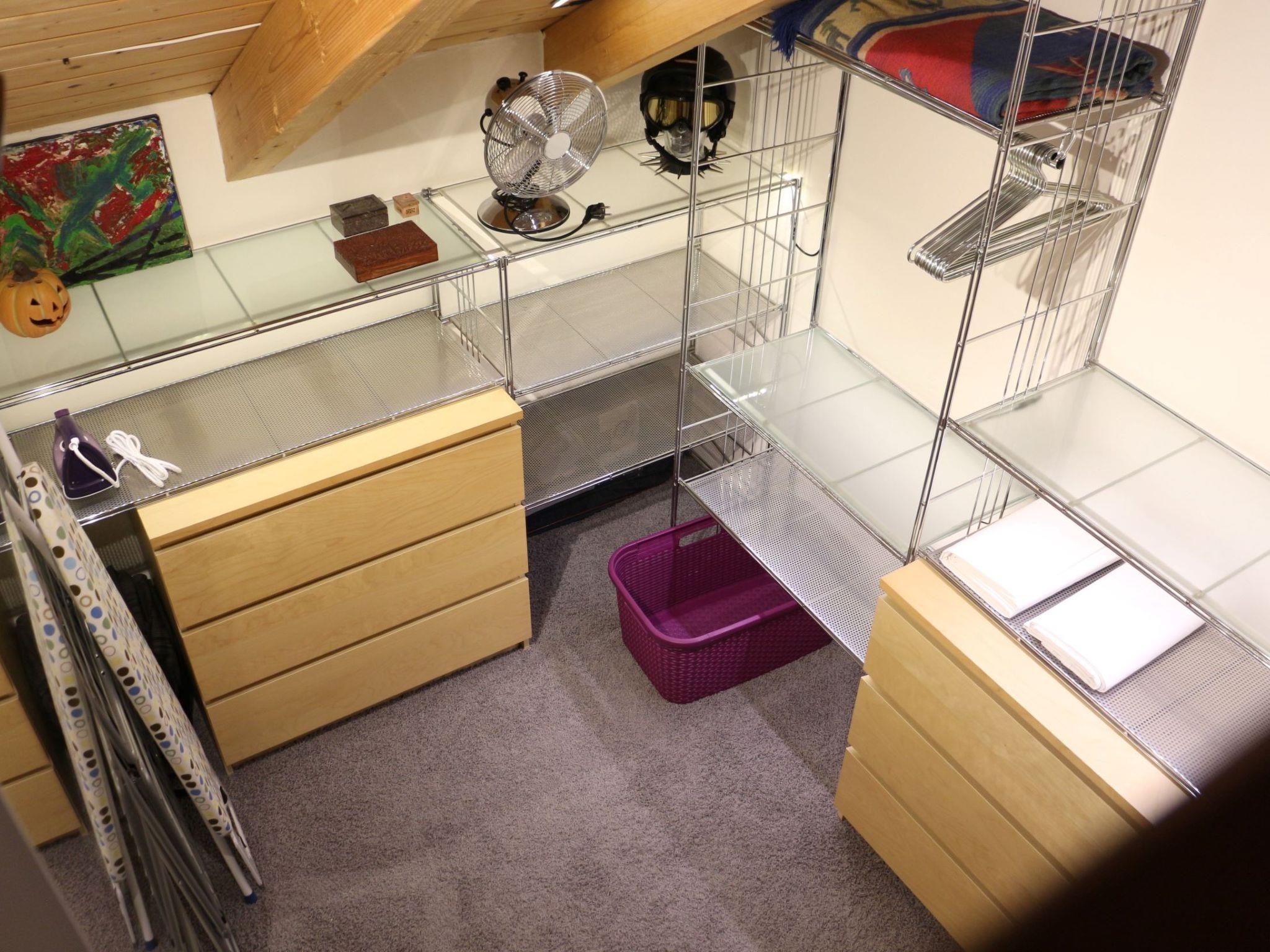 Das Schlafzimmer bietet 30 Quadratmeter mit begehbaren Kleiderschrank, Kabel-TV, Fitness-Ecke und einem elektrisch höhenverstellbaren Doppelbett.
