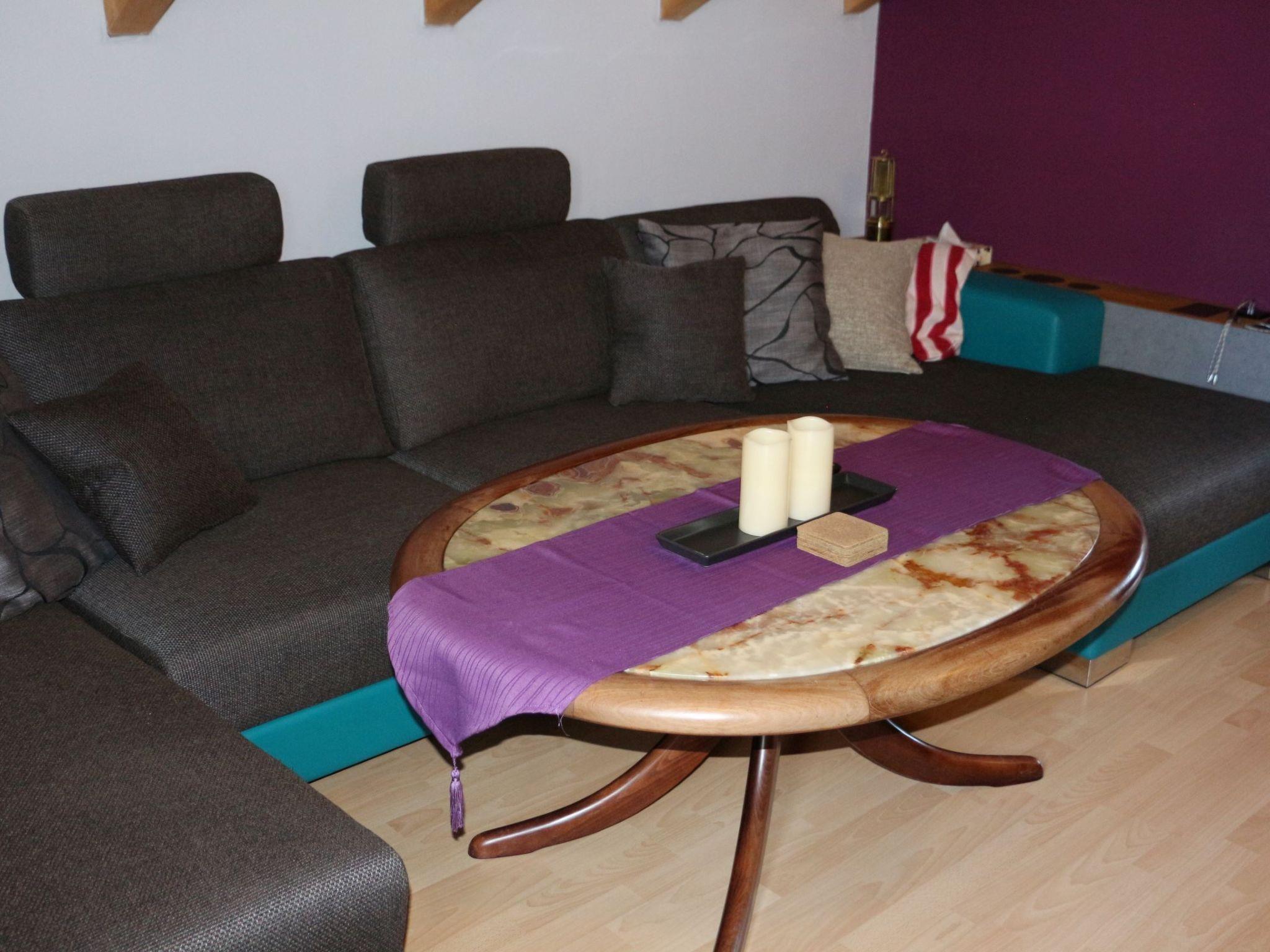 Essen, Entspannen, Genießen im Salon. Ausgestattet mit einem Esstisch für vier Personen, einer Sitzbank, und einer durchdachten Kitchenette.