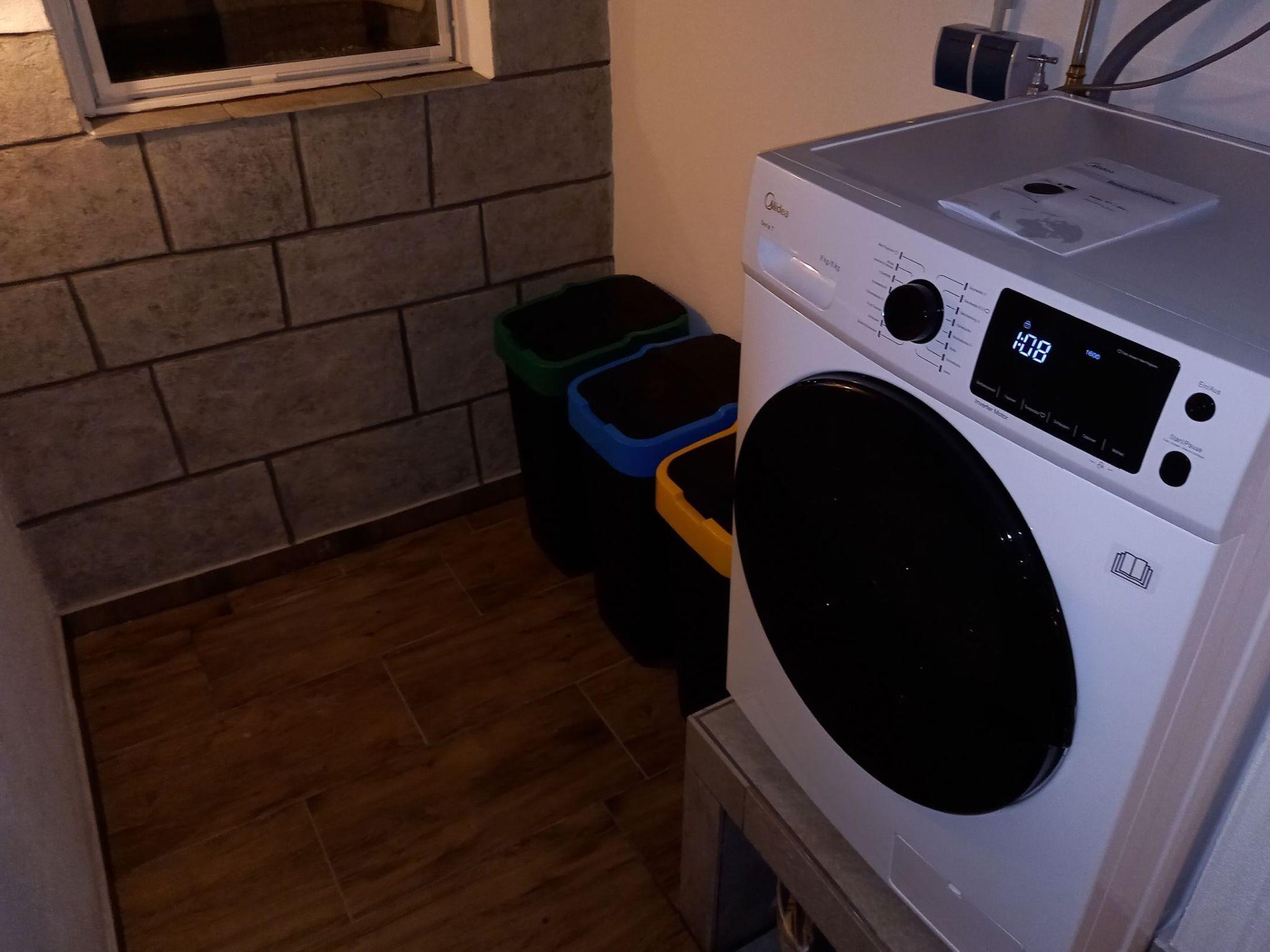 Der Keller ist ausgestattet mit einer Waschmaschine und integriertem Wäschetrockner. Dieser Bereich ist über eine schmale und steile Treppe zugänglich, die Trittsicherheit erfordert.