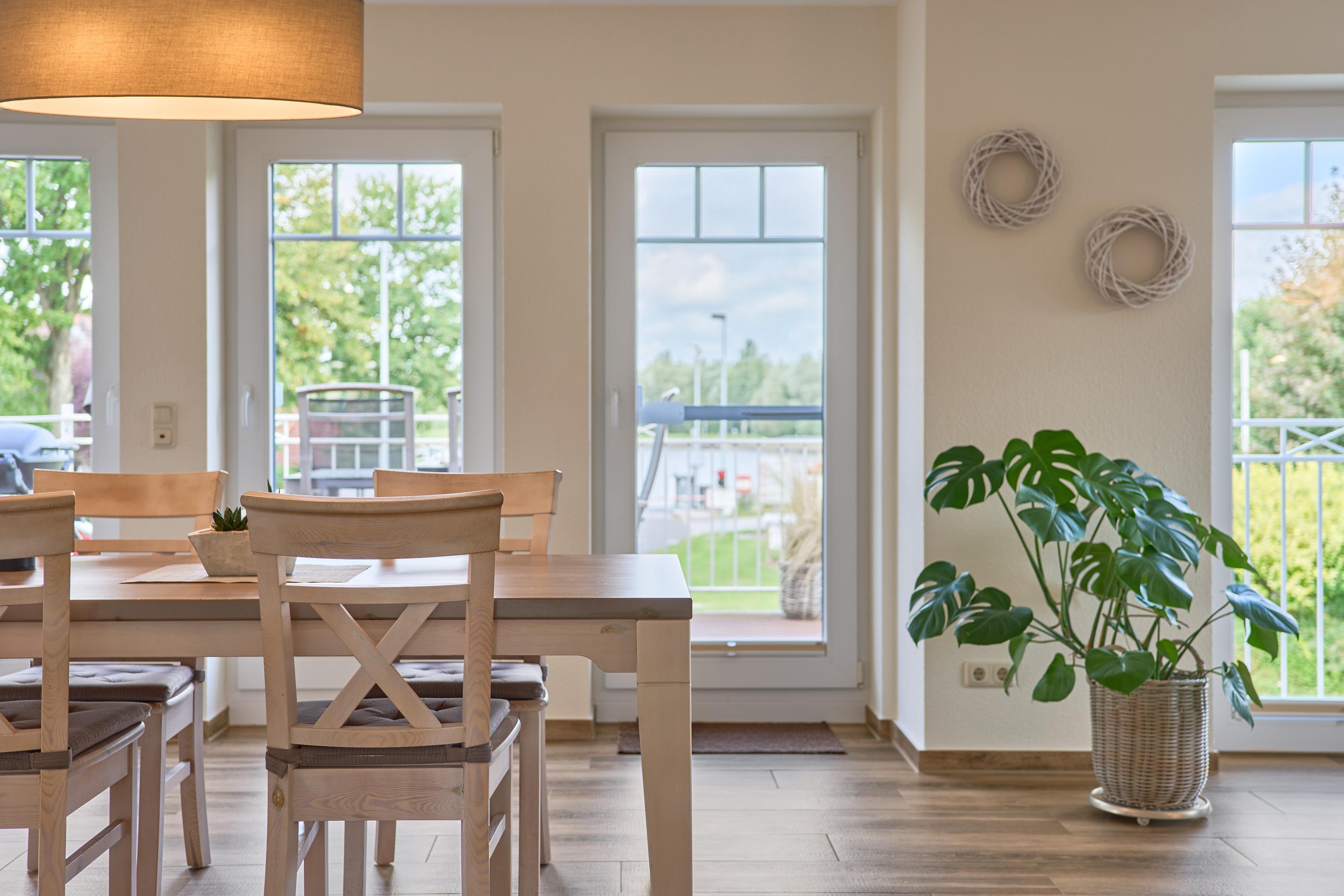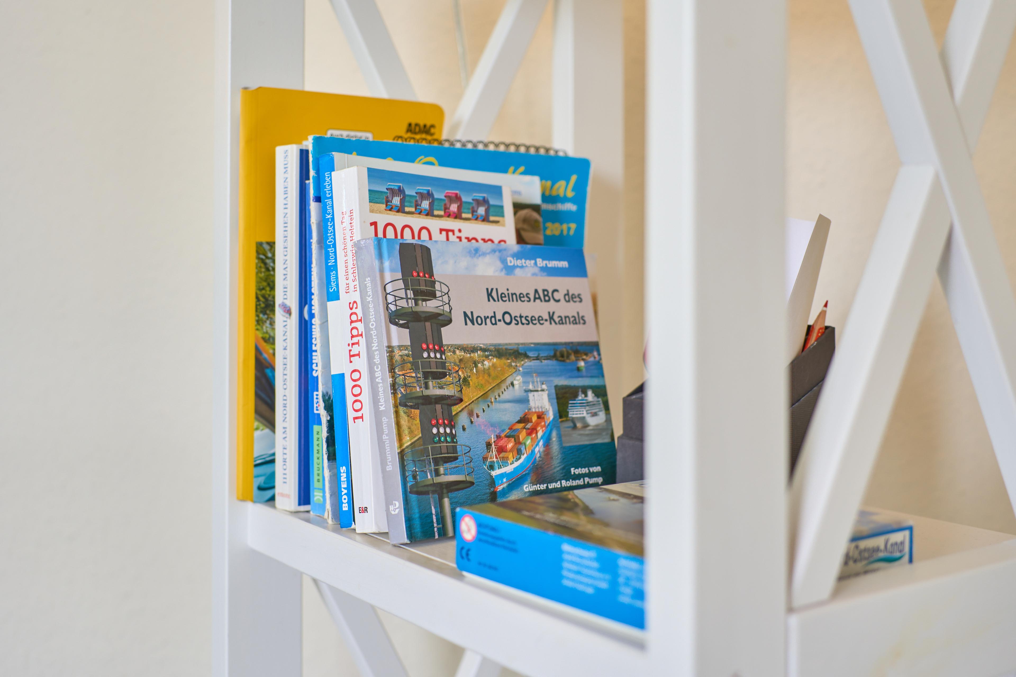 - Die Ferienwohnung befidet sich im ersten Stock, verzaubert mit großem Balkon mit hochwertigen Gartenmöbeln, Weber E- Grill und Sonnenschirm, von dem Sie die Sicht auf den NOK ungestört genießen können. Staunen Sie über die vorbeiziehenden Schiffe oder beobachten Sie das rege Treiben der NOK- Fähre. Zwei geräumige Schlafzimmer laden hier nach einem tollen Urlaubstag zum Träumen ein. Die Schlafzimmer (Doppelbett 180x200) mit TV haben zusätzlich zu den Plissees elektrische Rollläden, damit Sie auch im Sommer nicht auf einen erholsamen Schlaf verzichten müssen. Der Wohn- und Essbereich bietet mit seinen bodentiefen Fenstern einen herrlichen Blick auf den NOK, träumen Sie beim Kochen in der hochwertig ausgestatteten Küche von großen Pötten und der weiten Welt oder genießen Sie von der großen Wohnlandschaft das ständige pendeln der Fähre. Die Wohnung ist komplett hochwertig ausgestattet, neben dem 55 Zoll TV mit DVD Player und Sonoro Sound System finden Sie eine feine Auswahl an Lektüren und Spielen. Unsere kleinen Gäste liegen uns sehr am Herzen, für sie stellen wir Ihnen gerne unsere Kleinkindausstattung zur Verfügung.