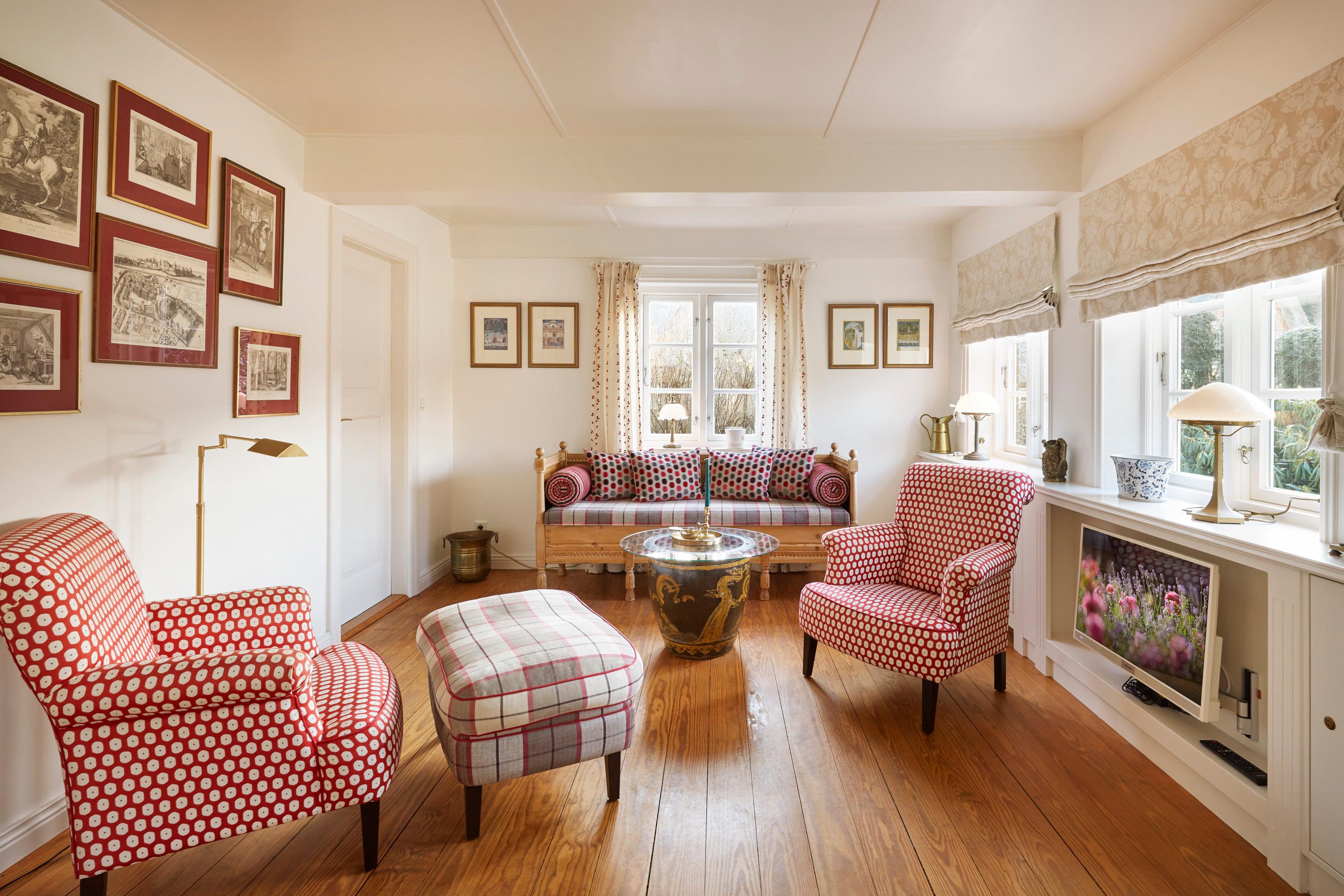 Die heutigen Eigentümer haben den Tückiss Hof unter Einbeziehung des Denkmalschutzes mit großem Aufwand stilsicher restauriert, modernisiert und mit ausgewähltem Mobiliar, schöner Dekoration und besonderen Accessoires eingerichtet. Die Erdgeschoßwohnung mit ca. 1400 qm großem Südgarten und altem Baumbestand bietet ein herrliches Wohlfühlambiente für Ihre Auszeit auf Föhr