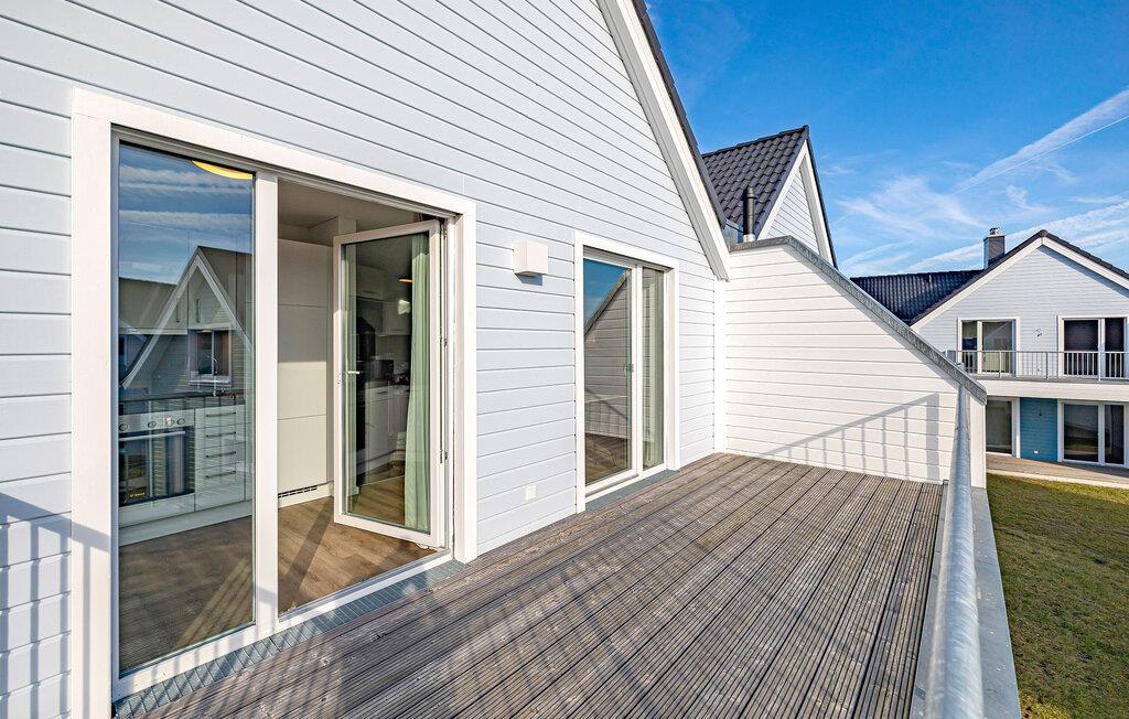 Komfortables Holzferienhaus mit Infrarotsauna, Kamin und Nähe zum Wasser im OstseeResort Olpenitz.