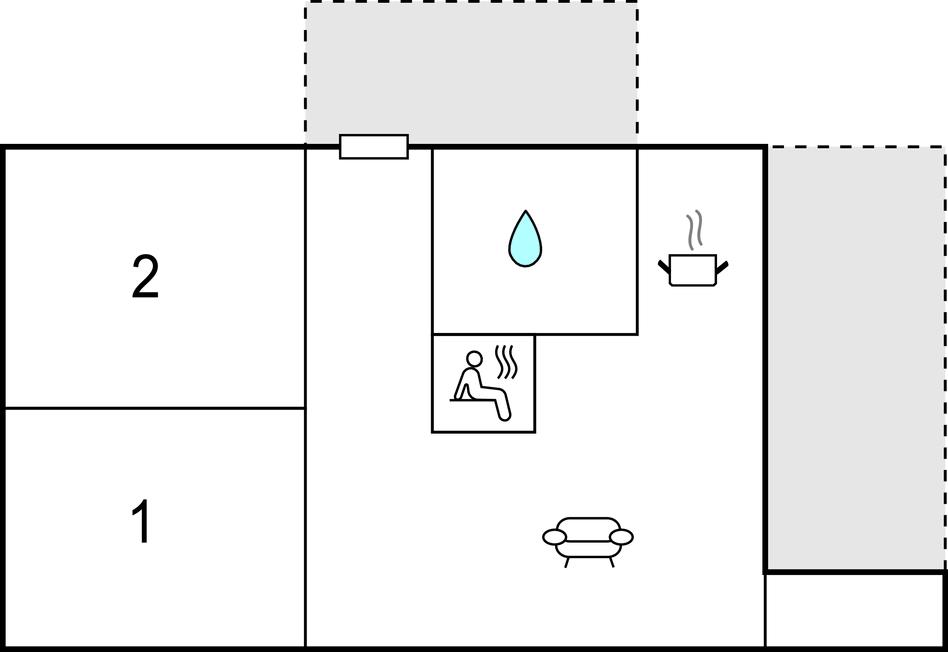 Sie betreten Ihr Ferienhaus über Ihre kleine, überdachte Terrasse. Die große Sonnenterrasse befindet sich auf der anderen Seite des Hauses. Hier können Sie am Morgen den Tag mit einem Frühstück starten oder bei einem Glas Wein im Sonnenuntergang ausklingen lassen.