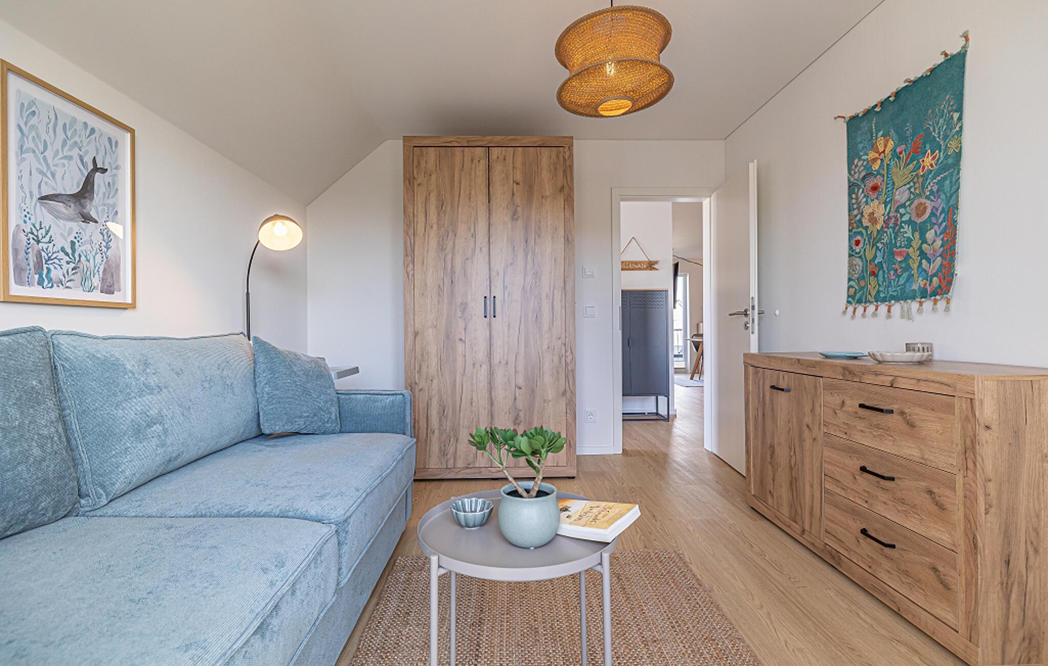 Die moderne und stilvolle Wohnung empfängt Sie in hervorragender Lage nahe dem Strand und eignet sich bestens für einen Urlaub mit wunderbaren Stunden am Meer und spannenden Unternehmungen in der Umgebung. Entspannen Sie nach einem aktiven Tag in der Infrarotsauna und machen Sie es sich am behaglich knisternden Kaminofen gemütlich.