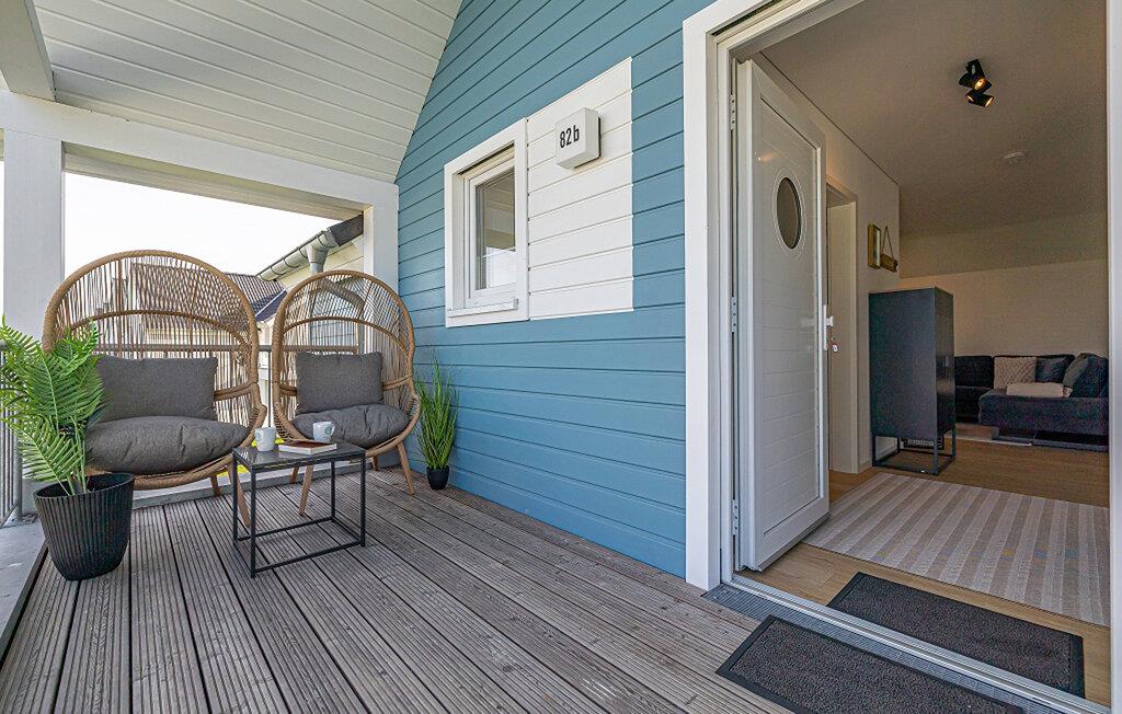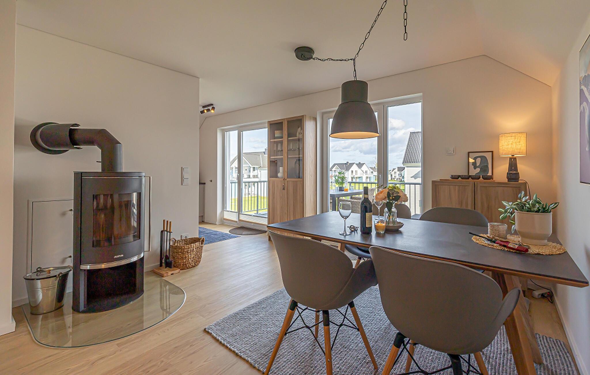 Moderne Ferienwohnung mit Kamin, Infrarotsauna und Balkon nahe Ostseestrand in Olpenitz.
