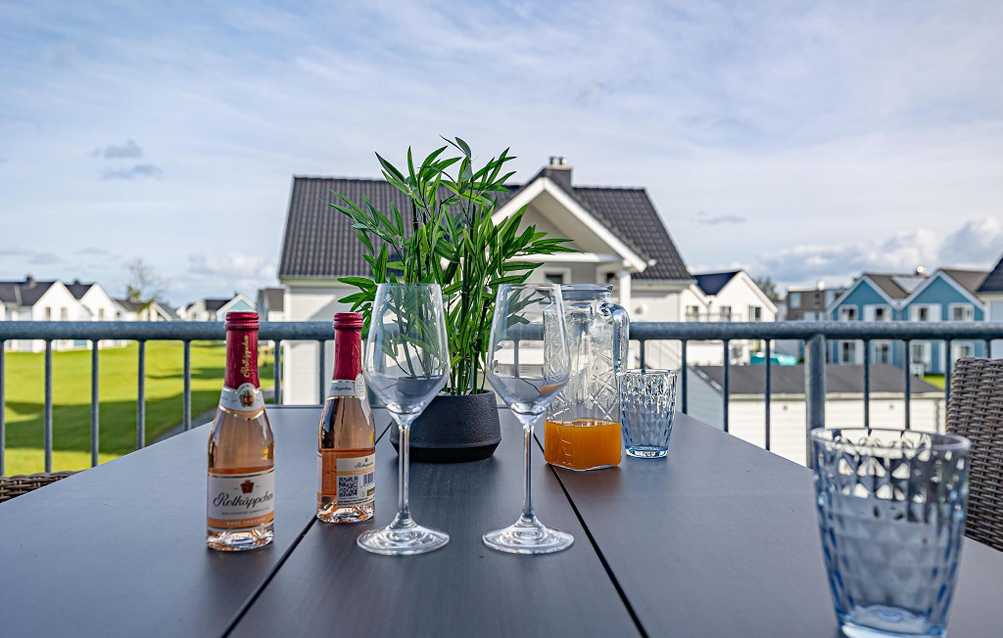 Auch auf dem Balkon können Sie viele entspannte Stunden verbringen, servieren Sie an warmen Tagen das Abendessen und ein paar kalte Getränke im Freien.