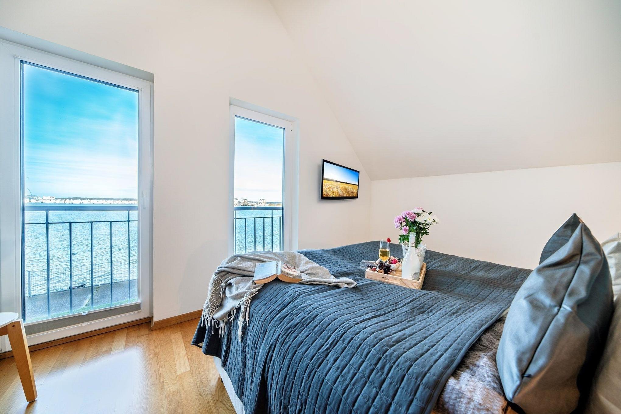 Modernes Ferienhaus mit Meerblick, Kamin und Sauna direkt am Ostseeresort Olpenitz.