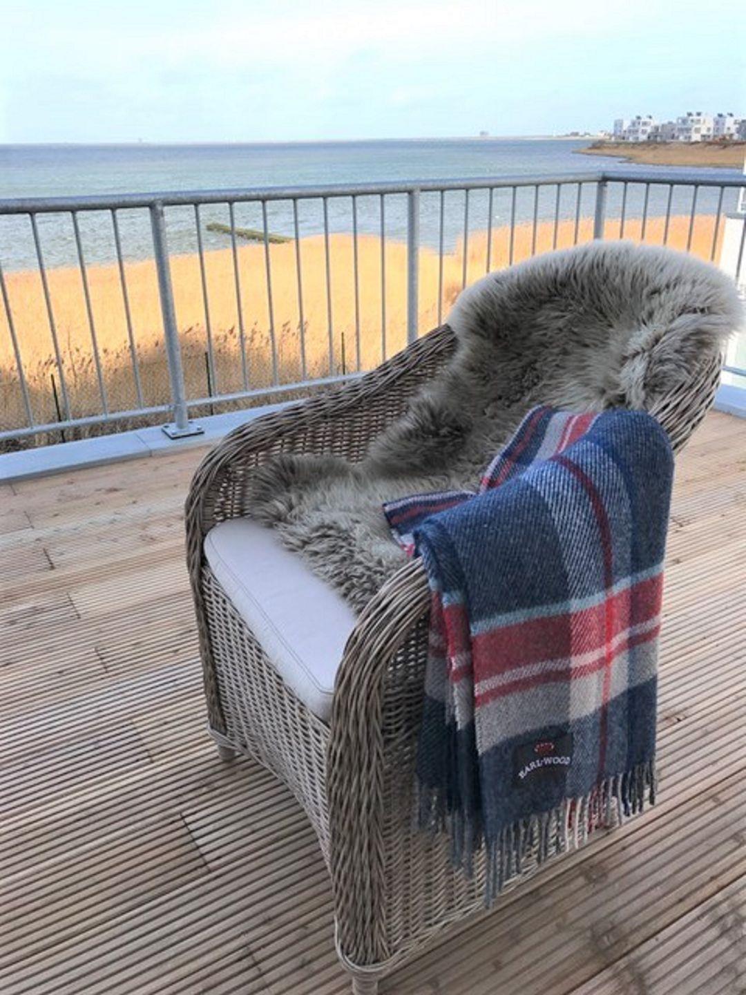 Das lichtdurchflutete Wohnzimmer mit Kaminofen lädt zu entspannten Abenden ein und bietet einen direkten Zugang zur Terrasse, wo Du bei einem Glas Wein den Sonnenuntergang genießen kannst. Der zweite, große Balkon mit Blick auf die Schlei und Ostsee ist mit komfortablen Gartenmöbeln ausgestattet, perfekt für gesellige Stunden im Freien.