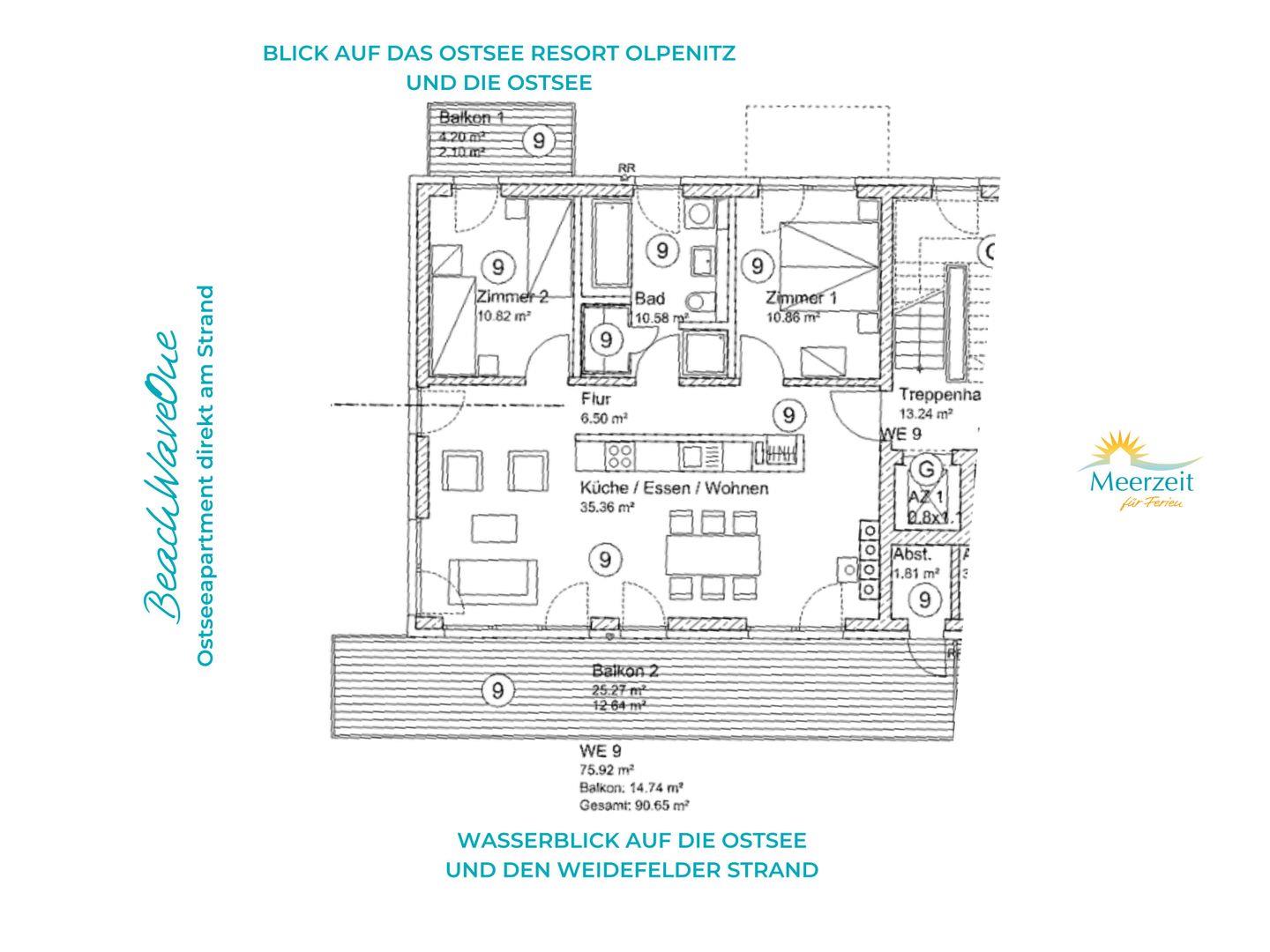Moderne Ferienwohnung "BeachWaveOne" direkt am Weidefelder Strand mit Sauna und Ostseeblick.