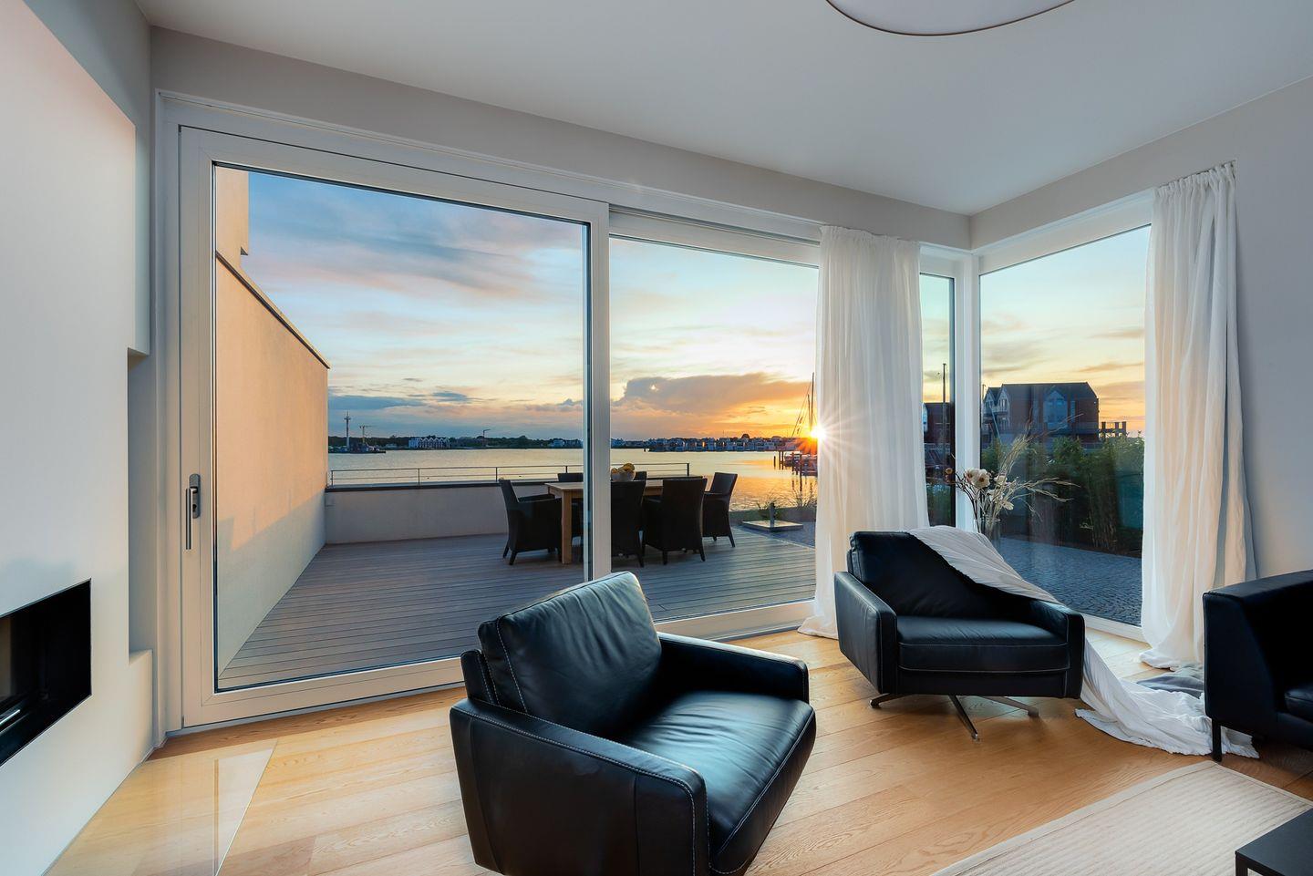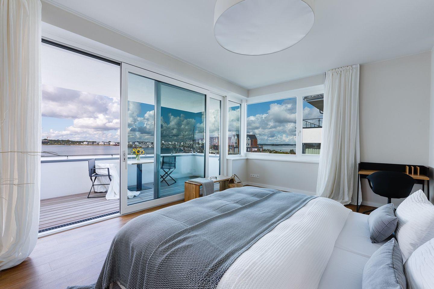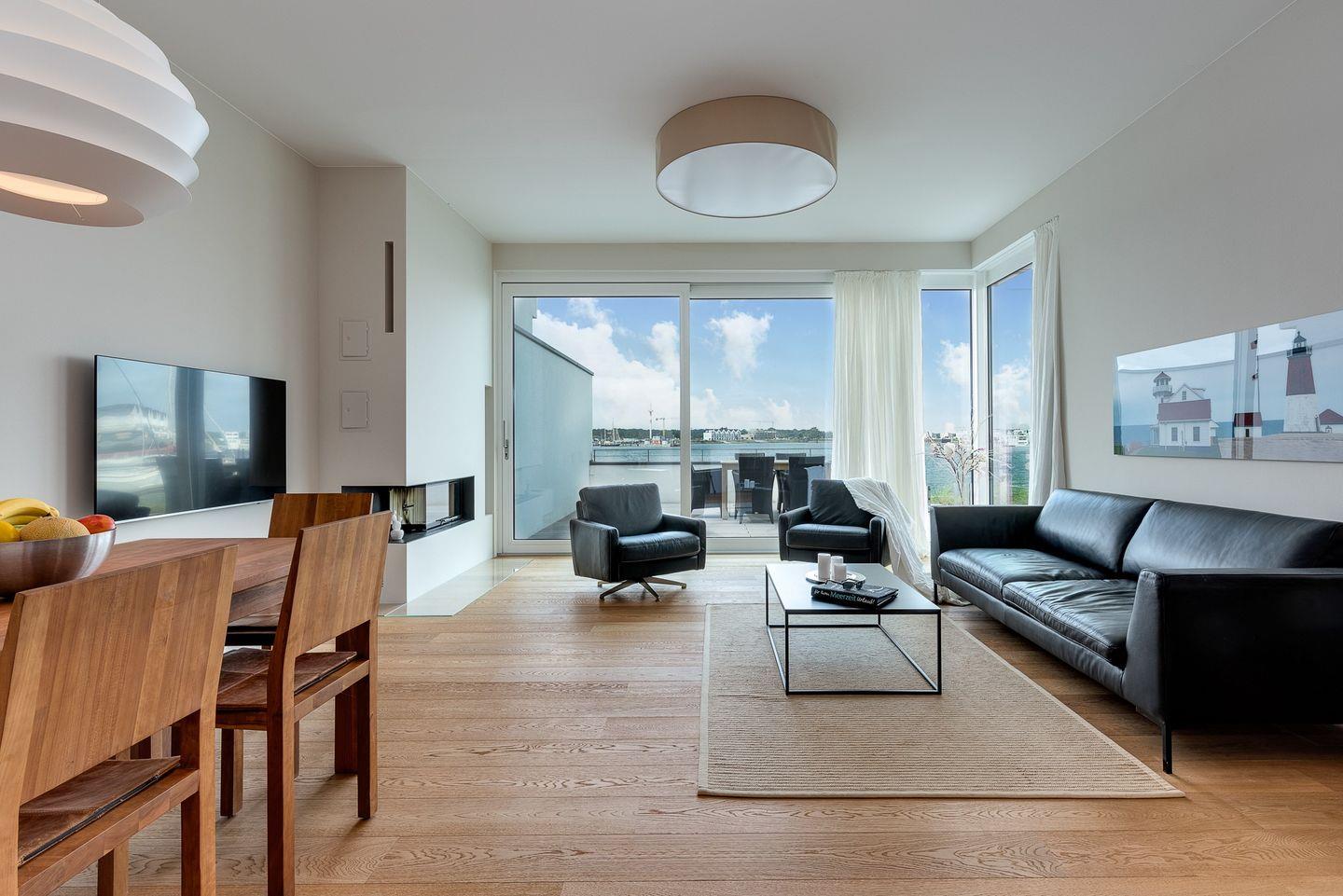 Luxuriöse Ostsee-Ferienwohnung in Olpenitz mit Sauna, Terrasse und Blick auf Hafen und Schlei.