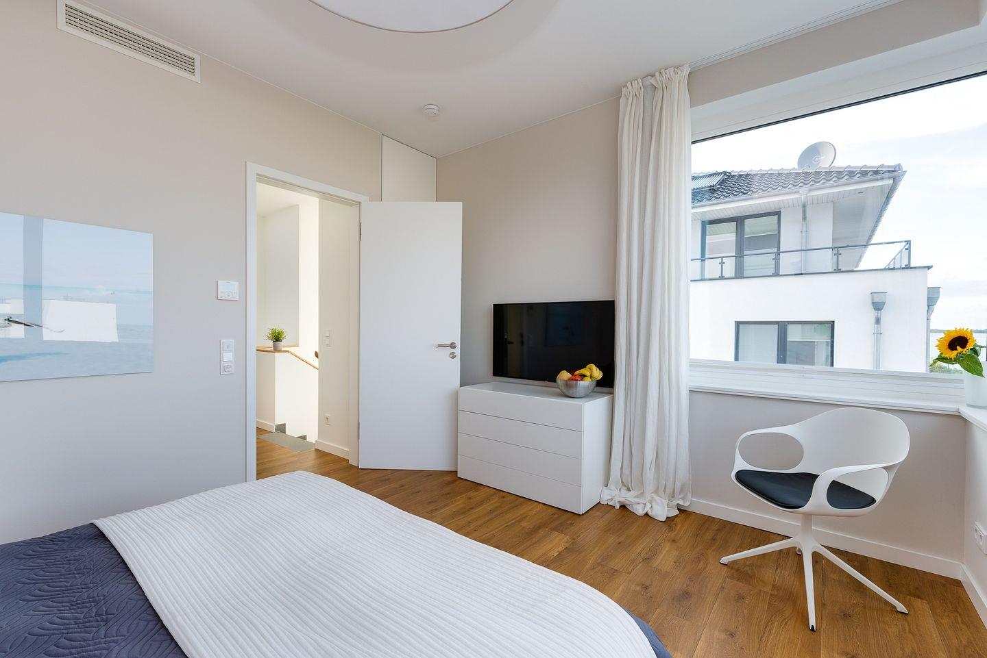 Luxusferienwohnung über 2 Ebenen direkt am Wasser in Strandnähe mit Terrasse, Balkon, finnischer Sauna und Kaminofen.