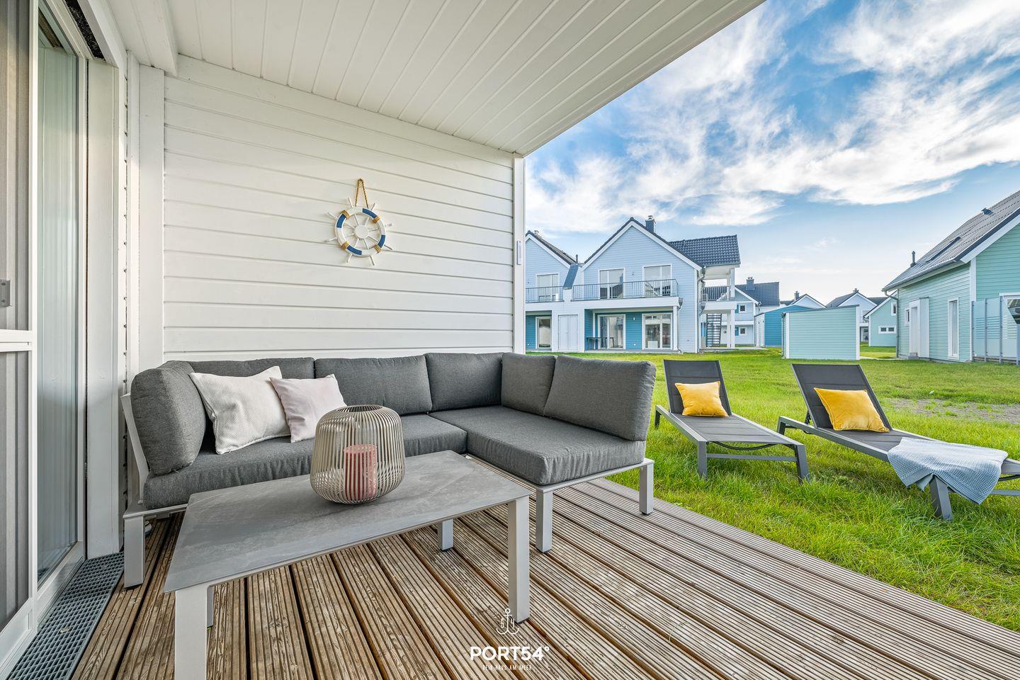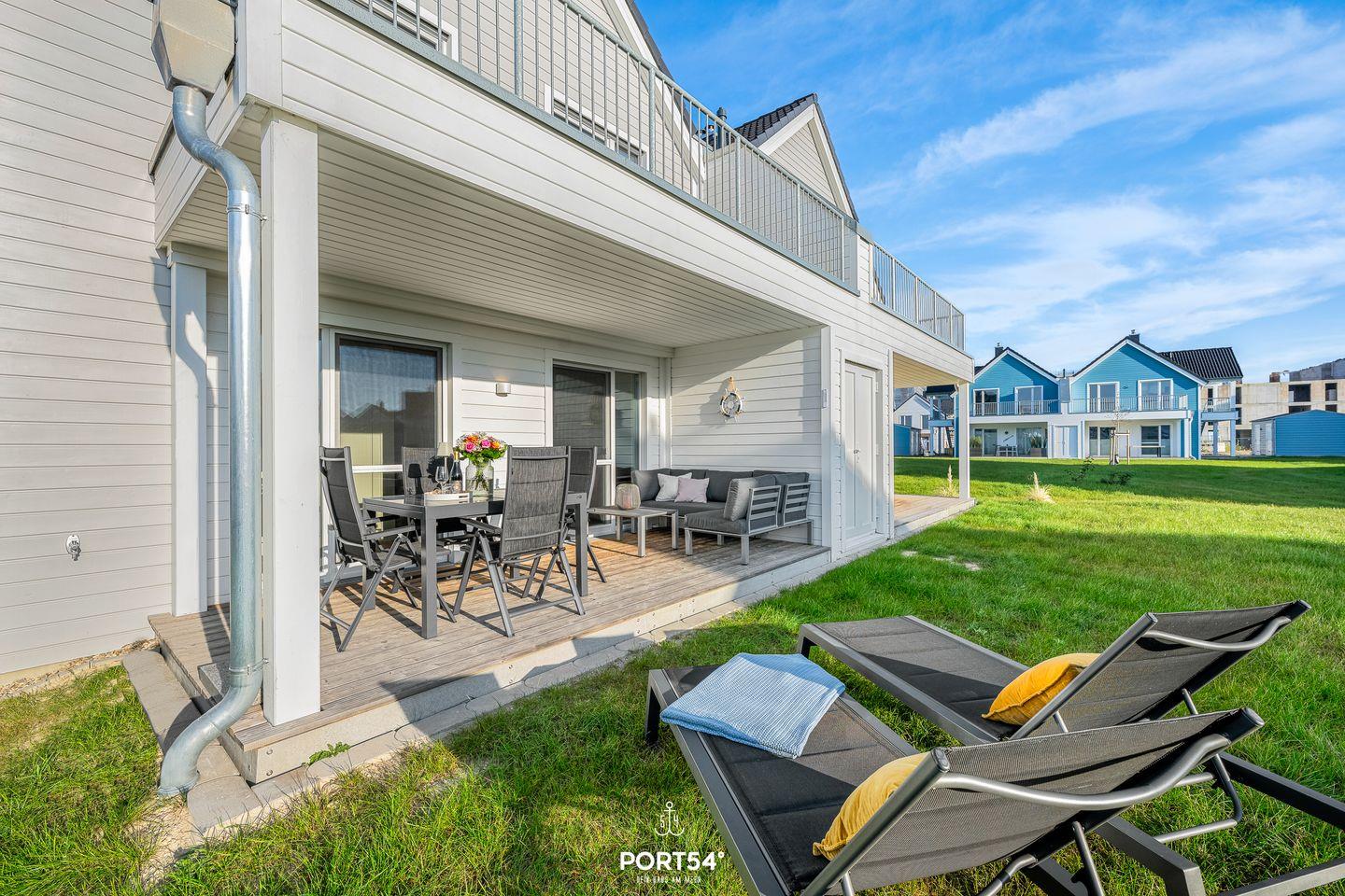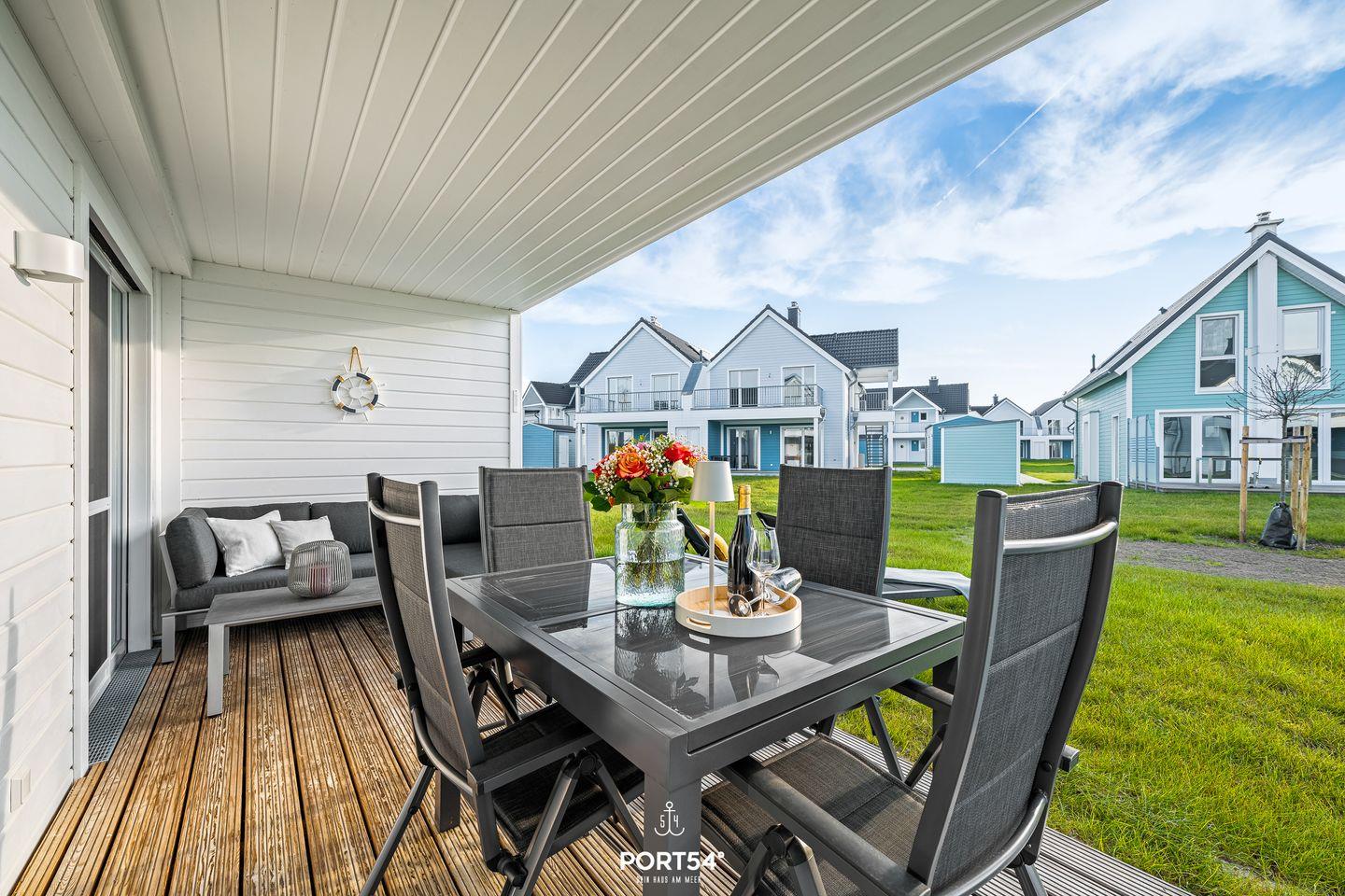 Nur wenige Meter vom Meer entfernt erwartet Dich ein stilvoll eingerichtetes Urlaubsdomizil, das mit seiner Kombination aus Komfort, Design und maritimer Leichtigkeit begeistert. Die Wohnung bietet Dir Platz für bis zu vier Personen und ist ideal für Paare, Familien oder kleine Freundesgruppen. Im gemütlichen Wohnzimmer laden ein komfortables Sofa und ein Smart-TV zum Entspannen ein. An kühleren Tagen schafft der Kaminofen eine besonders behagliche Atmosphäre. Direkt angrenzend öffnet sich die überdachte Terrasse, ausgestattet mit hochwertigen Gartenmöbeln, Strandkorb und Sonnenliegen. Hier kannst Du den Tag bei einem Glas Wein ausklingen lassen oder morgens beim Frühstück die frische Ostseeluft genießen.