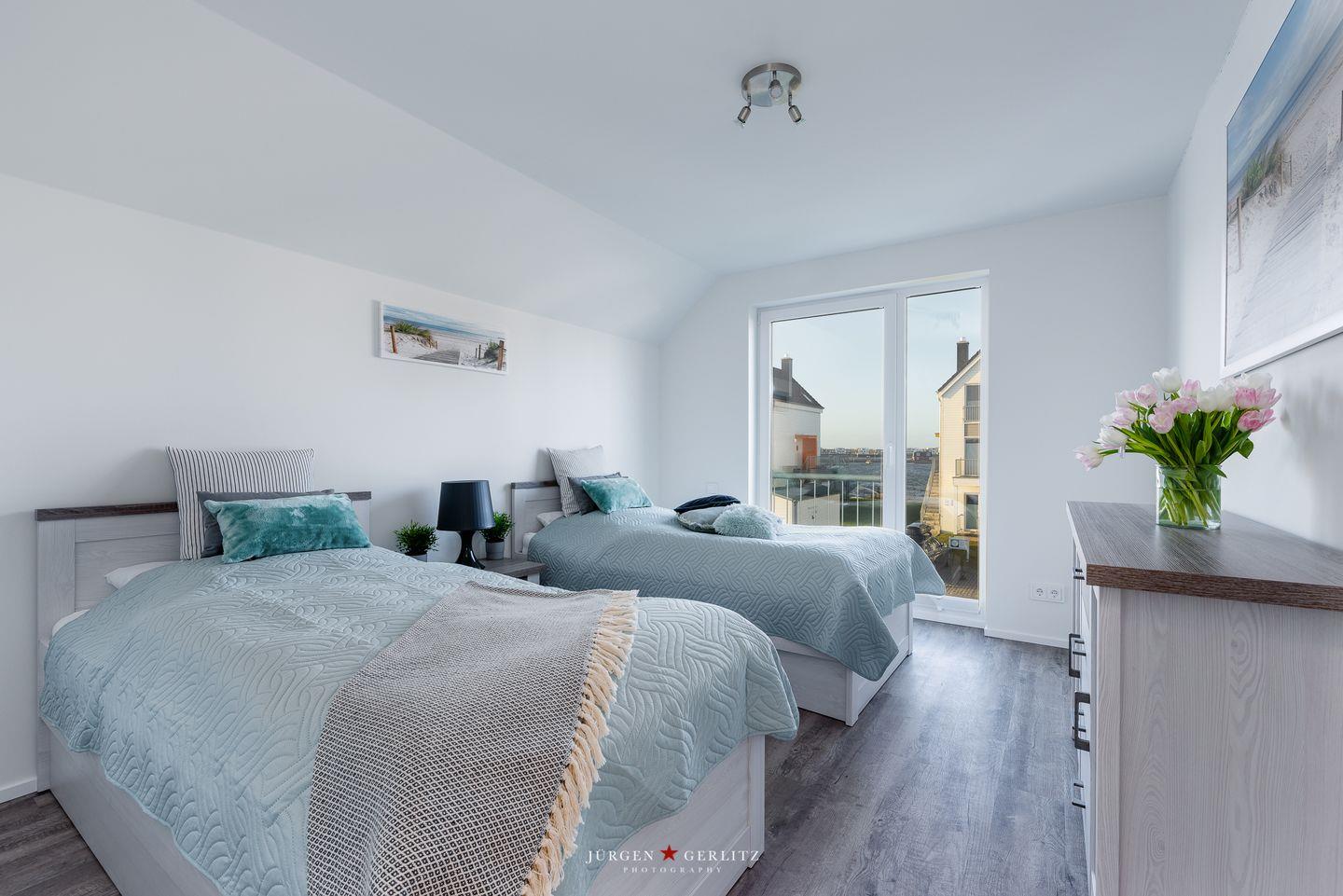 Moderne, hochwertig ausgestattete Ferienwohnung mit zwei Schlafzimmern, einem Wohn- und Essbereich mit Küche, einem Badezimmer sowie einem Balkon. Die Schlafzimmer bieten Dir ein komfortables Doppelbett sowie zwei gemütliche Einzelbetten. Im Badezimmer findest Du als besonderes Highlight eine Badewanne sowie eine Infrarot-Sauna – Wellness pur. Ein Stellplatz sowie ein Fahrradschuppen stehen Dir vor der Ferienwohnung zur Verfügung.
