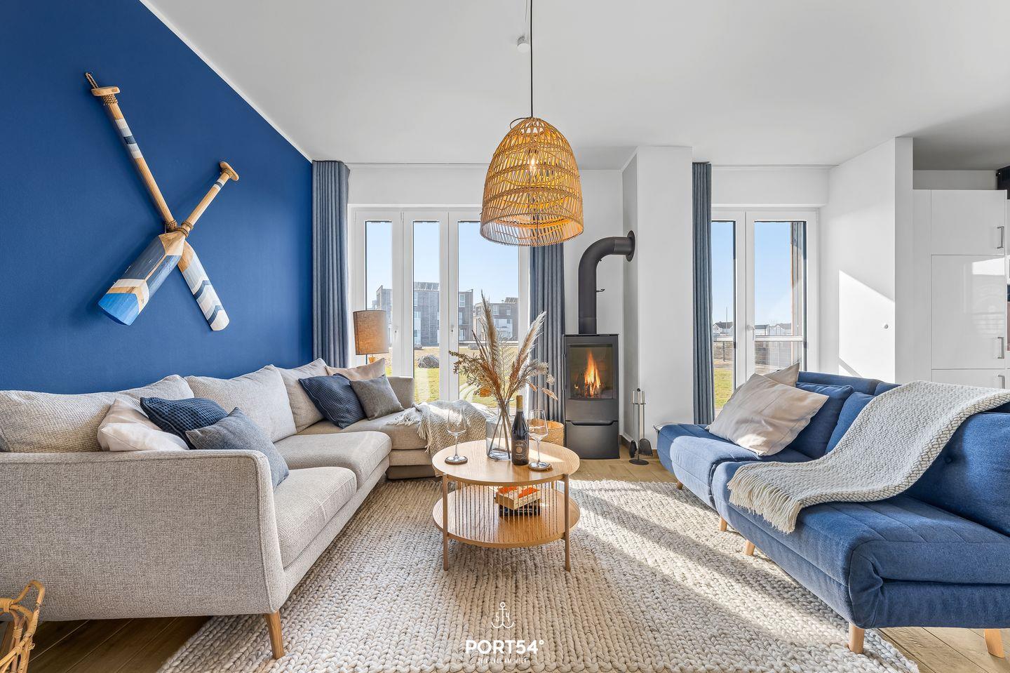 Die Ferienwohnung "Knuts Hafenlounge" in Olpenitz bietet auf 97 m² Platz für bis zu 4 Erwachsen und 2 Kinder und liegt direkt am Hafenbecken vom OstseeResort. Hier gibt es 2 Schlafzimmer, einen offenen Wohn- & Essbereich sowie eine Küche. Ausgestattet mit eigener Infrarotkabine, bodengleicher Dusche, WLAN, einem Kaminofen, einer Waschmaschine und einer überdachter Terrasse eignet sich die moderne Unterkunft ideal für alle, die gemeinsame eine erholsame Zeit an der Ostsee verbringen möchten