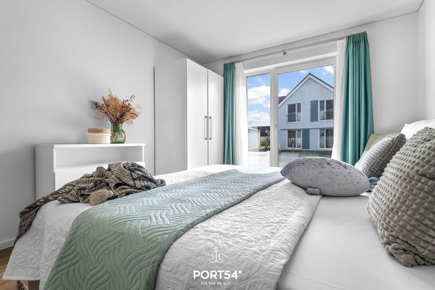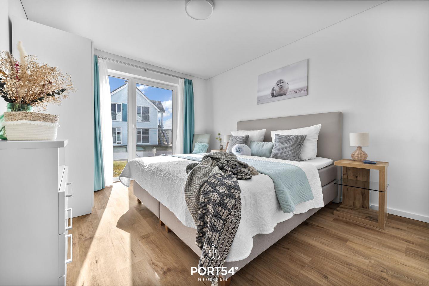 Die beiden Schlafzimmer bieten Dir angenehme Rückzugsmöglichkeiten. Eines der Schlafzimmer ist mit einem Doppelbett (180 × 200 cm) ausgestattet und verfügt zusätzlich über einen eigenen Fernseher. Das zweite Schlafzimmer ist mit zwei Einzelbetten (je 90 × 200 cm) eingerichtet.