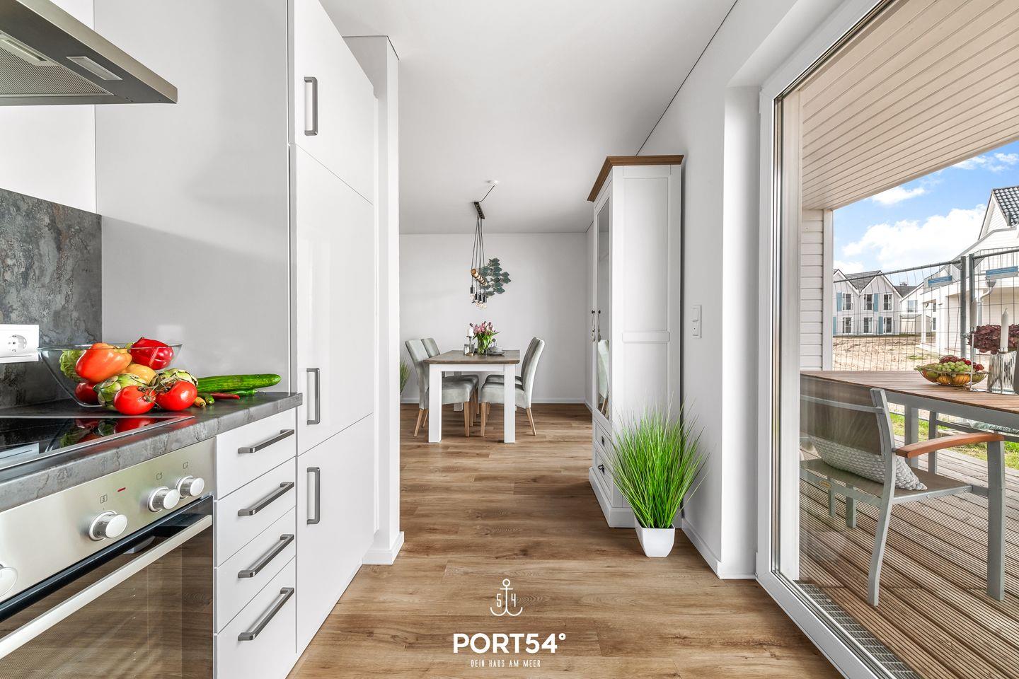 Im Mittelpunkt steht der offen gestaltete Wohn- und Essbereich. Hier gehen Wohnen, Kochen und Zusammensein fließend ineinander über. Die offene Küche ist harmonisch in den Wohnraum integriert und praktisch ausgestattet. Sie verfügt unter anderem über ein Cerankochfeld, einen Backofen, eine Spülmaschine, eine Mikrowelle sowie einen Kühlschrank mit Gefrierfach. Für Deinen Kaffeegenuss stehen eine klassische Kaffeemaschine sowie eine Tassimo-Espressomaschine bereit. So lässt sich Dein Urlaubsalltag unkompliziert und entspannt gestalten.