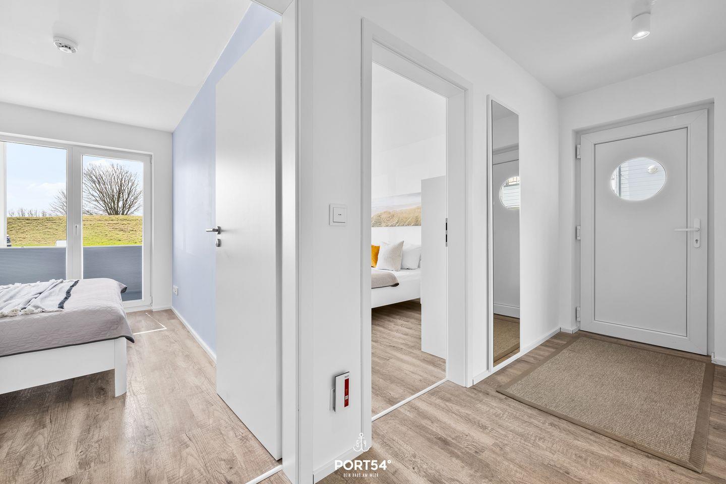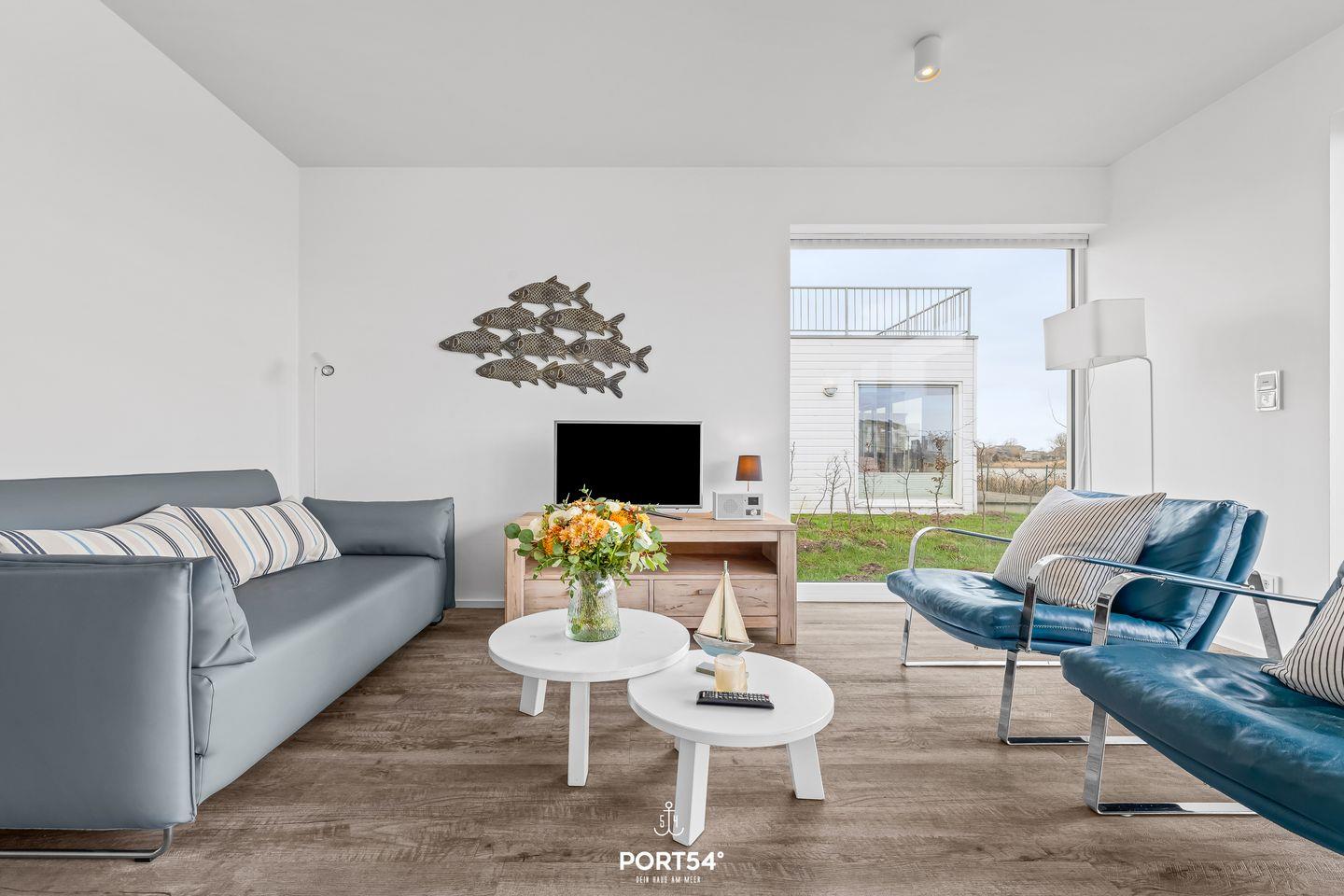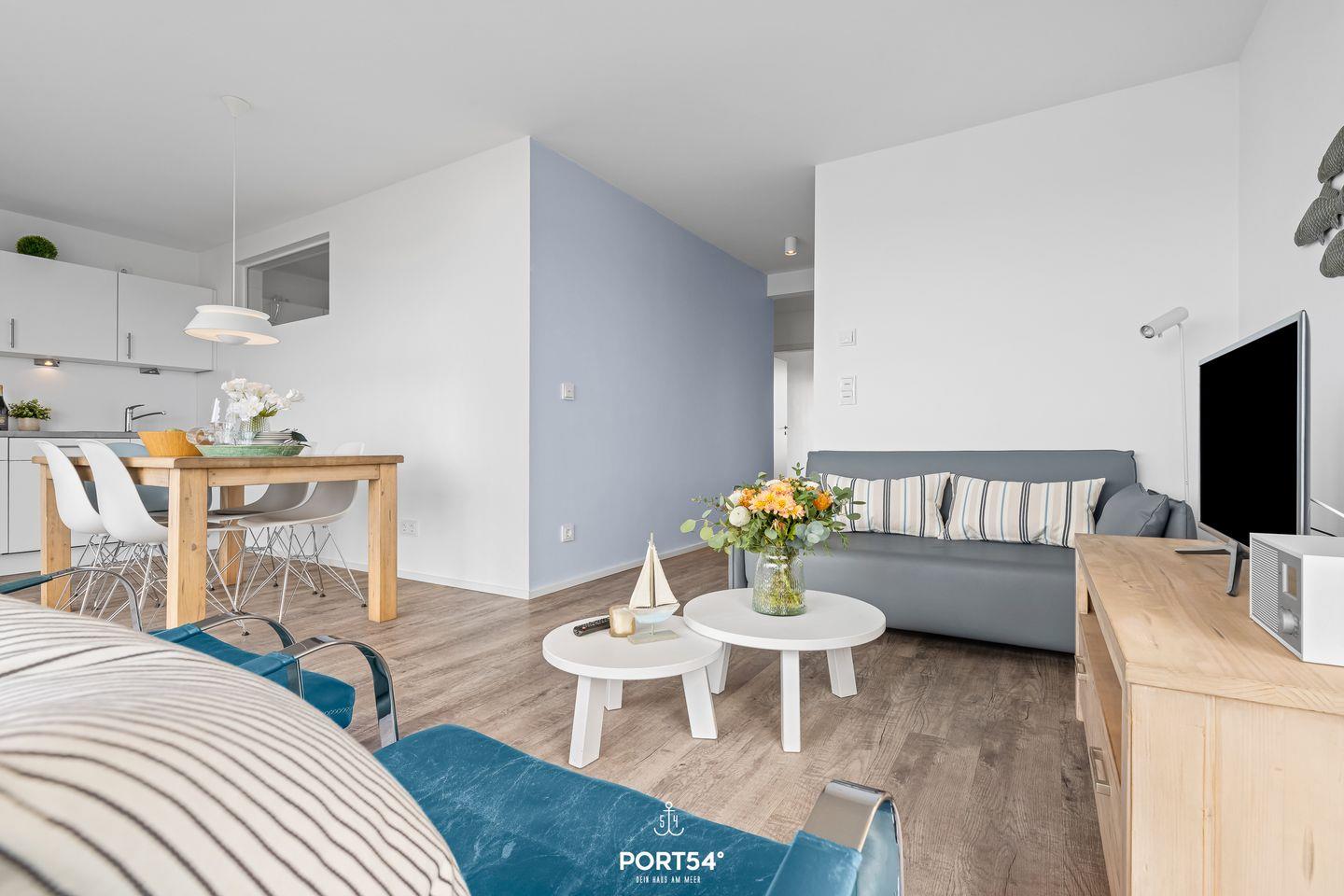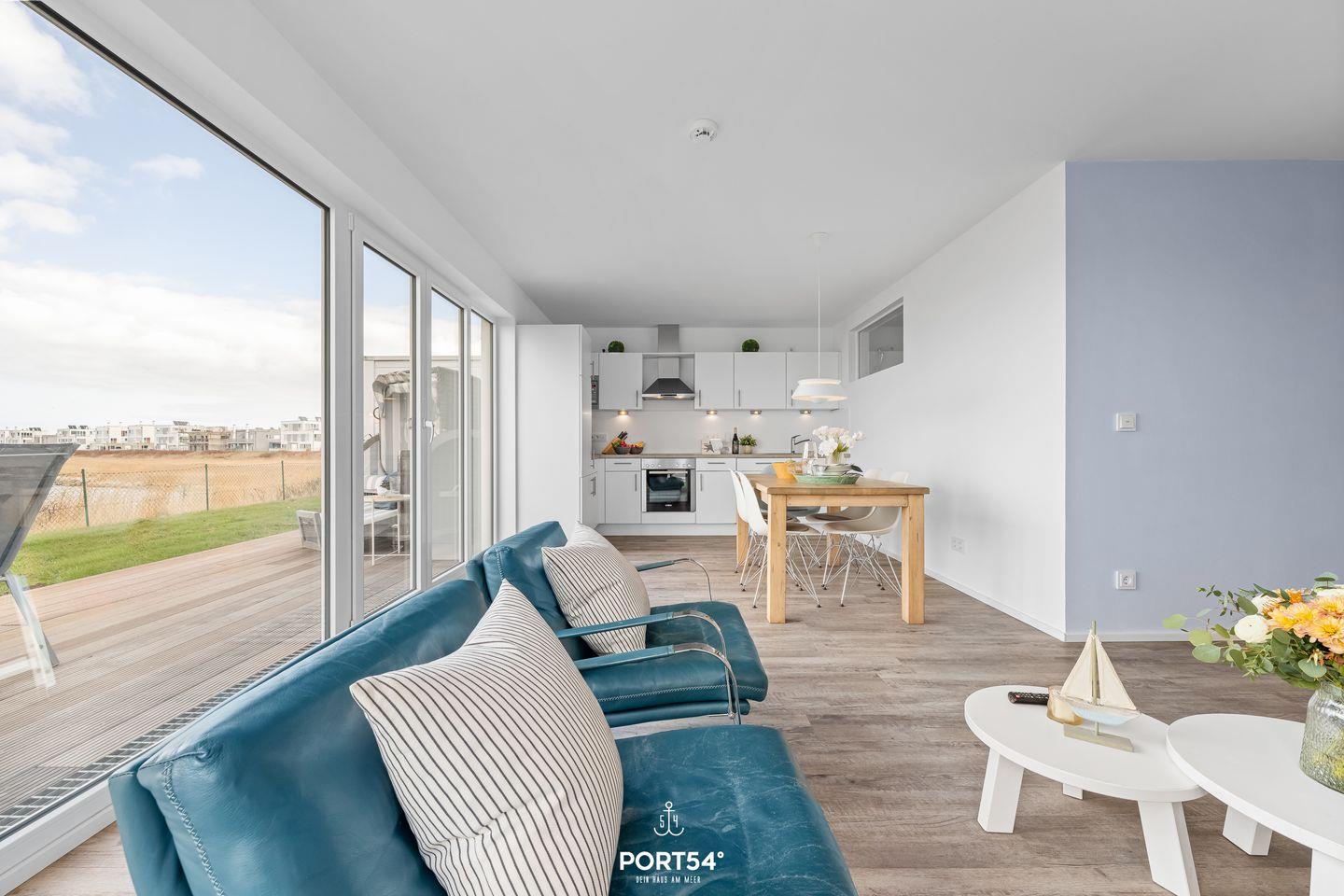 Das Ambiente der Unterkunft ist modern und lichtdurchflutet. Die Fußbodenheizung sorgt in allen Räumen für angenehme Temperaturen. Die Fenster sind mit Sichtschutz ausgestattet, und alle wichtigen Details des täglichen Bedarfs wie Staubsauger, Garderobe, Schuhschrank sowie eine Erstausstattung sind vorhanden.