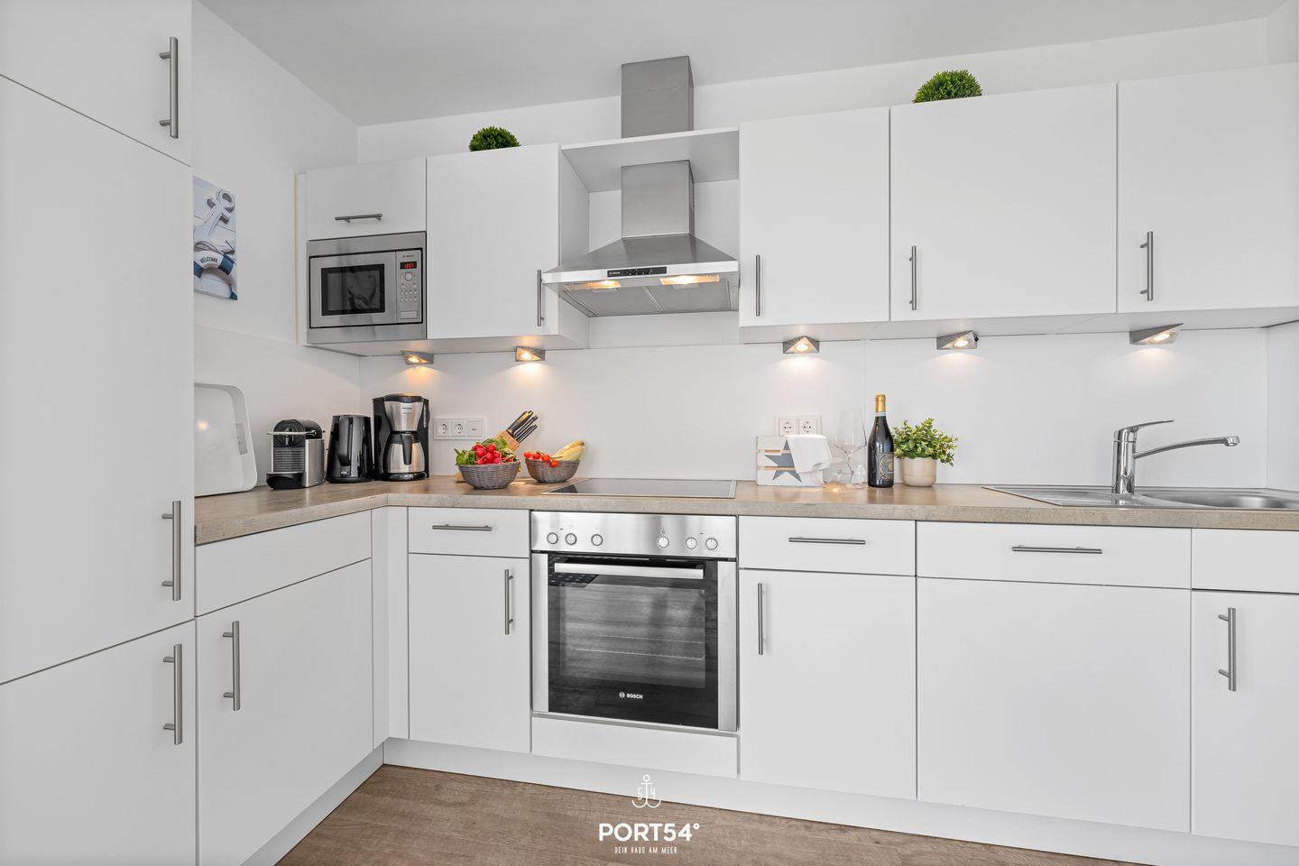 Die Küche ist offen zum Wohnbereich gestaltet und erfüllt höchste Ansprüche. Dir stehen unter anderem eine Mikrowelle, eine Senseo-Maschine, eine klassische Kaffeemaschine, eine Spülmaschine sowie ein Toaster zur Verfügung. Sämtliche Küchenutensilien, Geschirr und Besteck sind in ausreichender Anzahl vorhanden, sodass Du hier problemlos gemeinsame Kochabende verbringen kannst.
