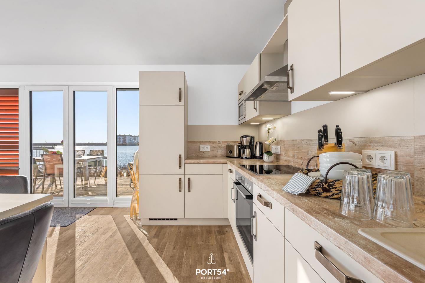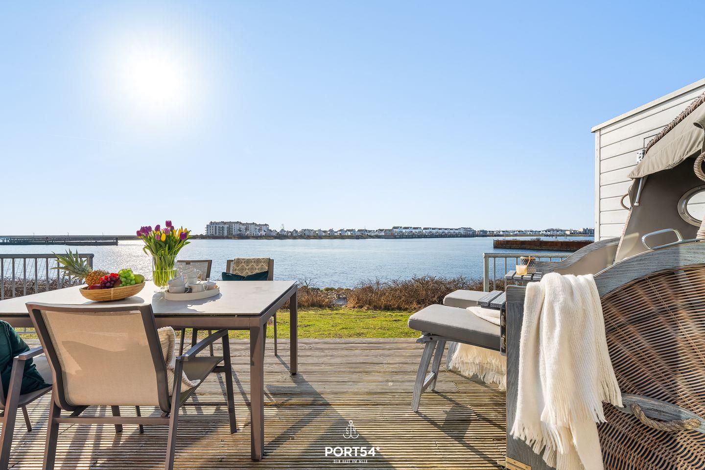 Die Ferienwohnung Landungsbrücke 22 in Olpenitz bietet modernen Komfort, Meerblick, Sauna und eine Terrasse direkt am Wasser.