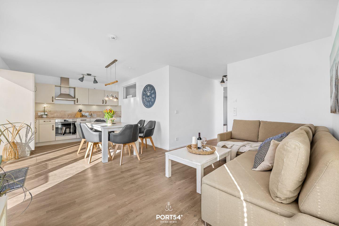 Die Ferienwohnung "Landungsbrücke 22" bietet Platz für bis zu sechs Personen und überzeugt mit einer hochwertigen Ausstattung. Eine eigene Sauna, Terrasse, moderne Küche, WLAN und ein privater Parkplatz sorgen für höchsten Komfort. Dank der Lage mit fantastischem Meerblick ist sie der ideale Rückzugsort für Familien und Erholungssuchende. Bitte beachte, dass es zu Bautätigkeiten in der Nähe der Unterkunft kommt.